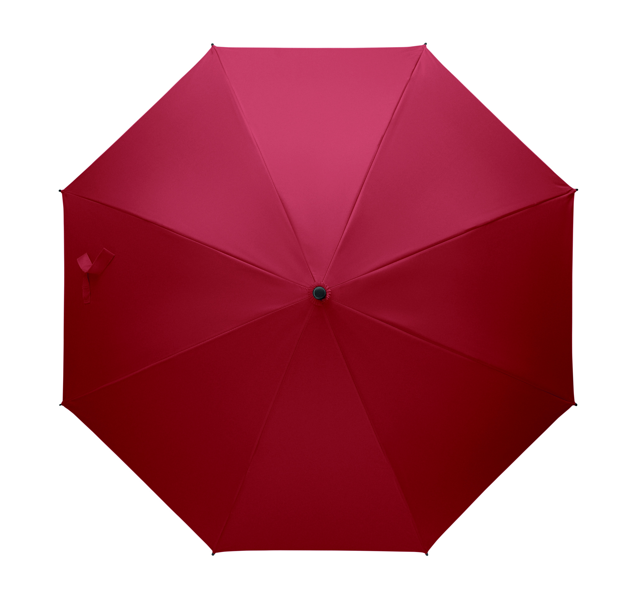 23 inch straight auto open umbrella with black plating metal frame, fibreglass ribs and panels in 190T pongee fabric. Plastic tips and top. Rubberized PP plastic curved handle. Manual closure.