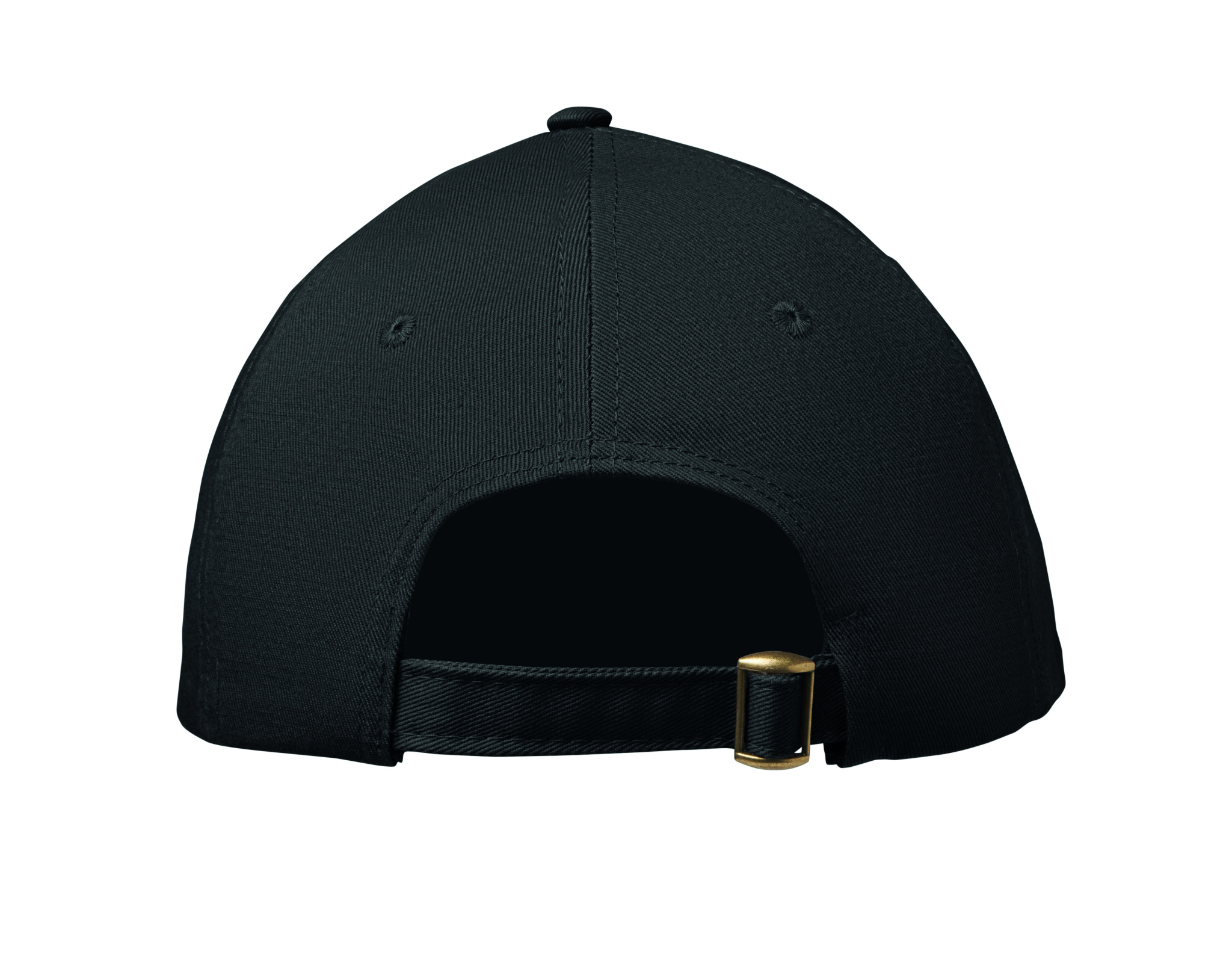 6 panel baseball cap in cotton twill 280 gr/m² with adjustable steel belt closure. Oxford peak. Washable. Size 7 1/4.