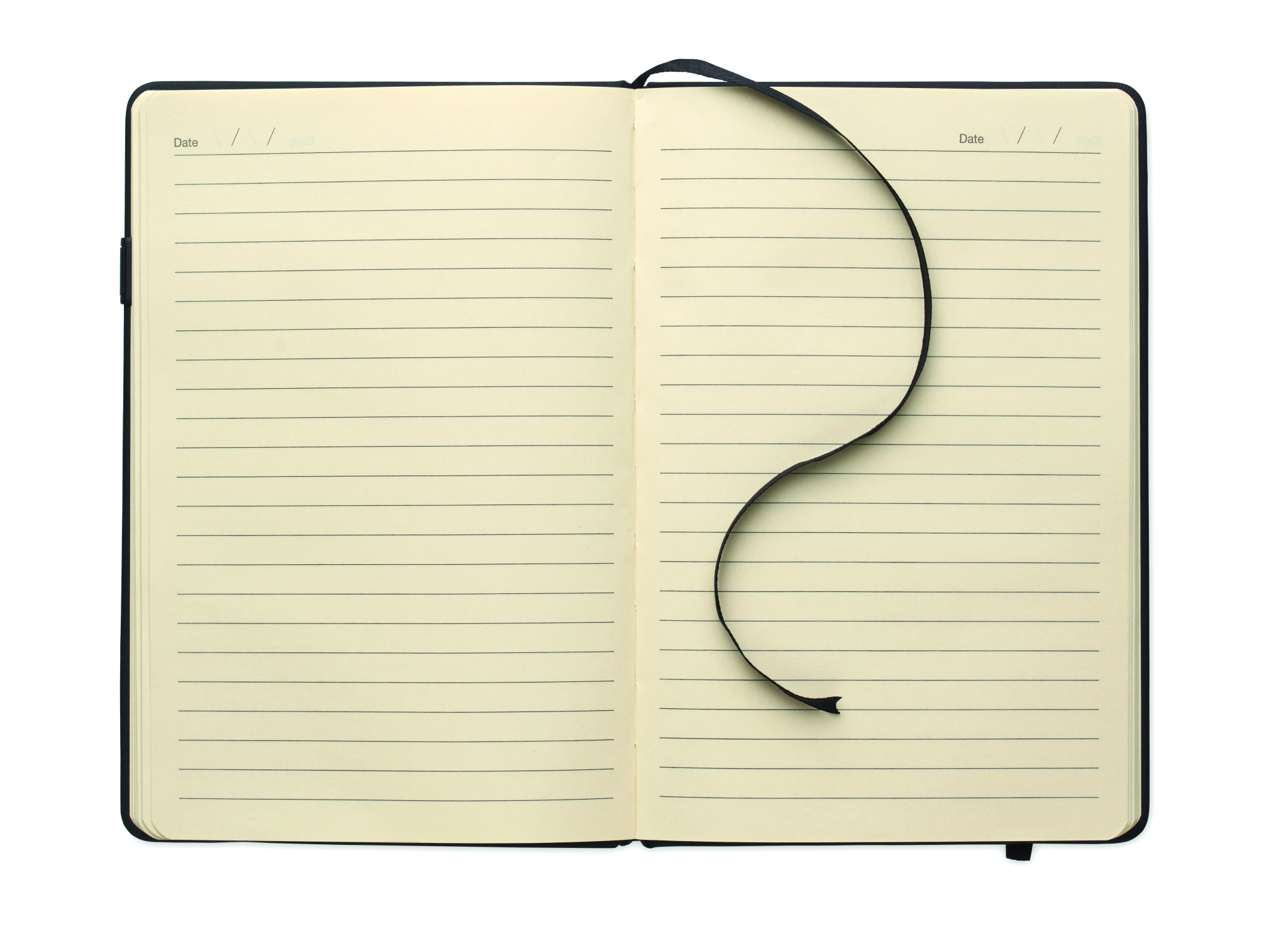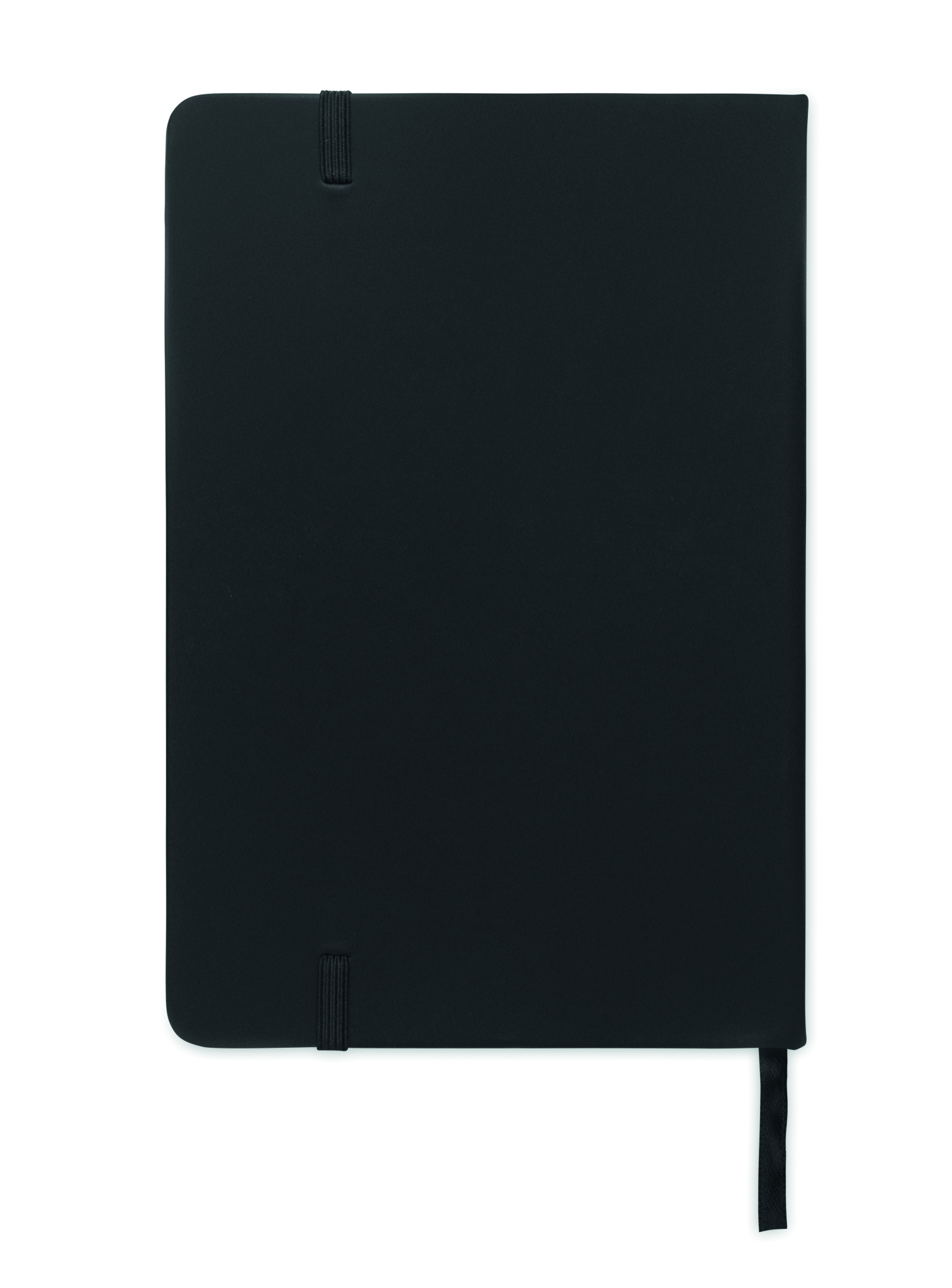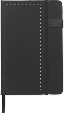 A5 notebook in hard cover made of 58% recycled polyester and 42% PU including integrated 16GB USB stick. Casebound. 160 lined recycled paper pages (80 sheets). Matching elastic closure strap and ribbon page-marker. FSC®-certified | FSC MIX CREDIT, P7.1, FSC-C213206