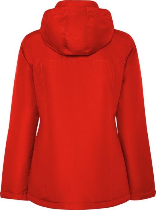 Водонепроницаемая утепленная куртка-парка для женщин. Облегающий крой. Высокий воротник со складным и съемным капюшоном с застежкой на липучку. Центральная застежка-молния с клапаном. Боковые карманы на молнии с фиксированным клапаном. Внутренний карман с застежкой на липучке. Регулируемые манжеты с петлей для ремня на липучке. Внутренний доступ к усилителям на спине и левой стороне груди.
