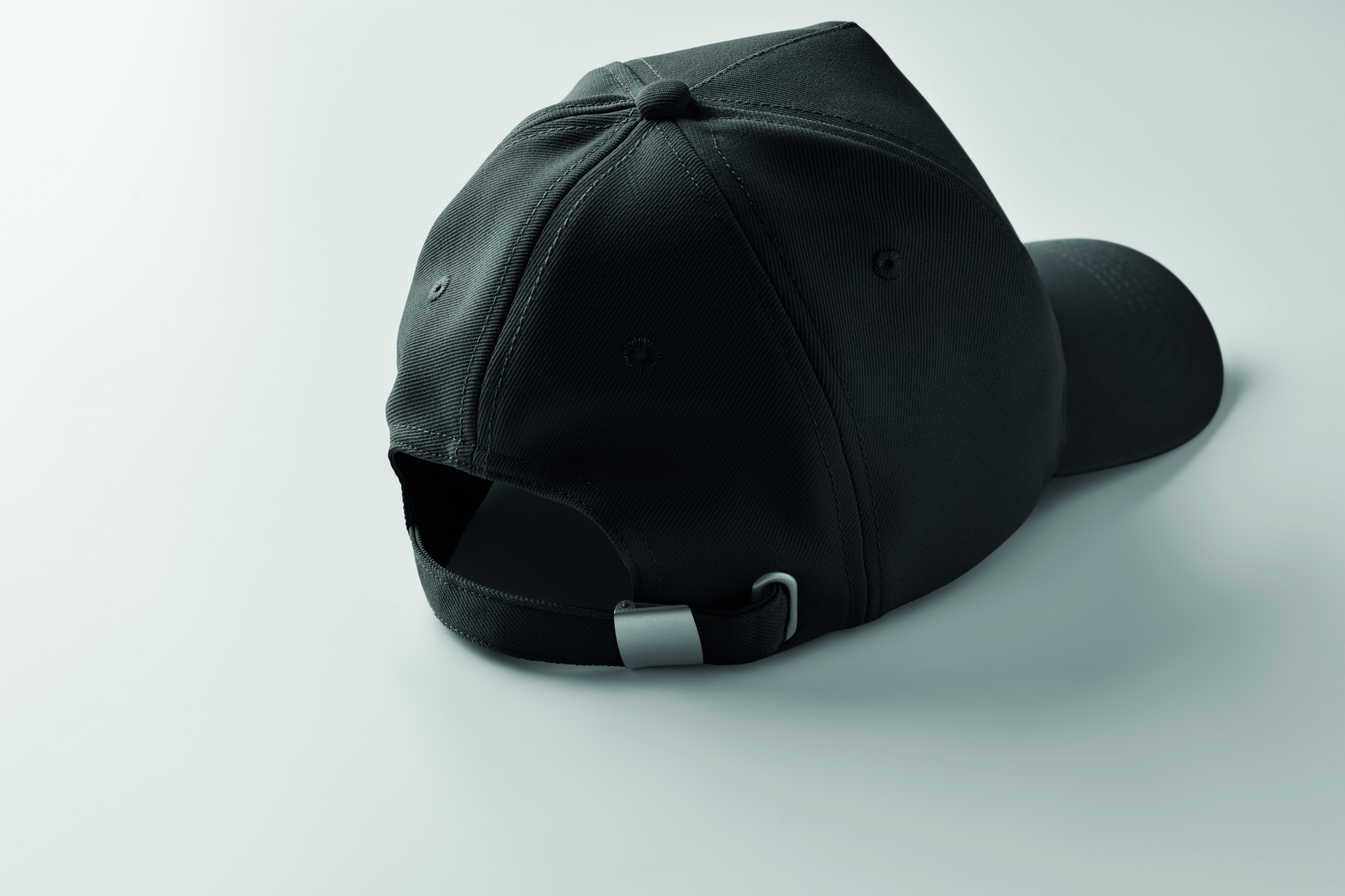 Бейсболка 5-клинка из переработанного полиэстера 210 гр/м2 с металлической застежкой. 4 вышитых люверса соответствующего цвета. Размер 7 1/4.