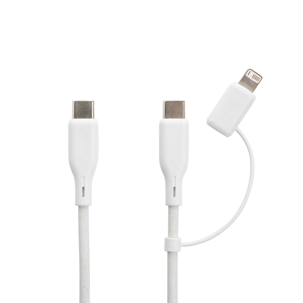 2 шт. комплект для быстрой зарядки 20 Вт для мобильных устройств и других небольших устройств. С адаптером ЕС с портом USB C 20 Вт и кабелем для быстрой зарядки из переработанного ТПЭ 60 Вт длиной 120 см (USB C на USB / Lightning). Кабель поддерживает передачу данных, а также зарядку более крупных устройств, таких как ноутбуки. Адаптер и кабель изготовлены из сертифицированного RCS переработанного ПК, АБС и переработанного ТПЭ. Упакован в сумку из сертифицированного RCS переработанного ПЭТ. Общее содержание переработанного материала во всем наборе: 59% от общего веса изделия. Сертификация RCS гарантирует полностью сертифицированную цепочку поставок переработанных материалов. Упакован в упаковку FSC®. Не содержит ПВХ. Входное сетевое зарядное устройство переменного тока 100-240 В 50/60 Гц 0,6 А; Выходное сетевое зарядное устройство USB-C: 5,0 В⎓3,0 А, 9,0 В⎓2,22, 12,0 В⎓1,67 А (макс. 20 Вт);