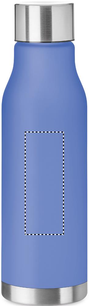 Питьевая пластиковая бутылка (RPET) с прорезиненным покрытием и крышкой из нержавеющей стали и пластика с внутренней стороны (RPET), а также силиконовым кольцом. Полная герметичность. Емкость: 600 мл.Не протекает.