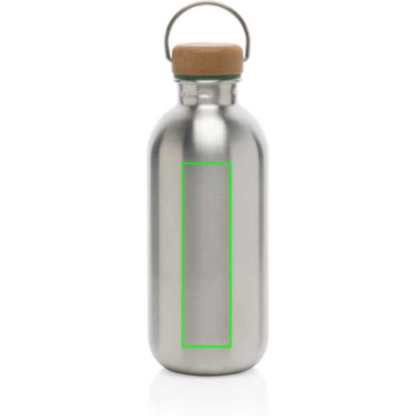 Легкая и компактная бутылка из высококачественной нержавеющей стали объемом 600 мл с крышкой из полипропилена, полученного из экологически чистых источников. Крышка из нержавеющей стали и полипропилена оснащена удобной петлей для переноски. Только ручная стирка