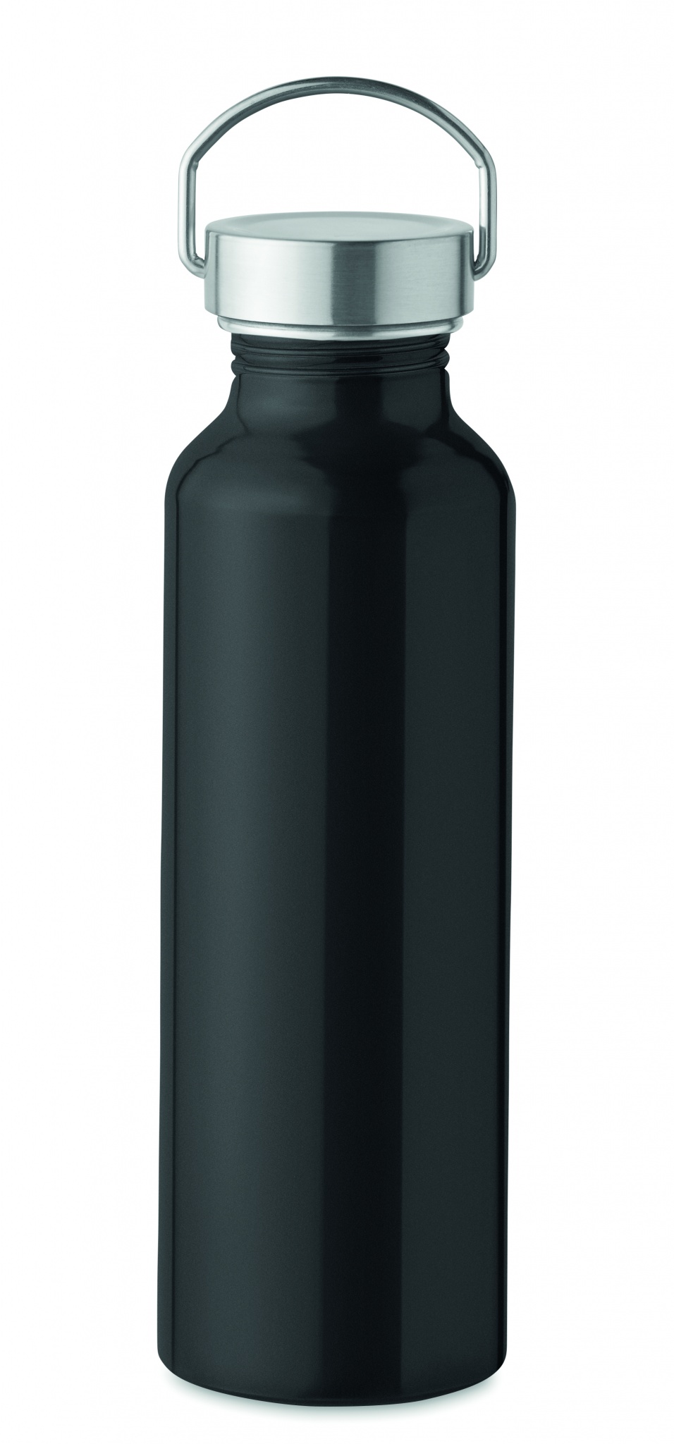 Бутылка объемом 500 мл из переработанного алюминия с крышкой с ручкой из нержавеющей стали, Черный