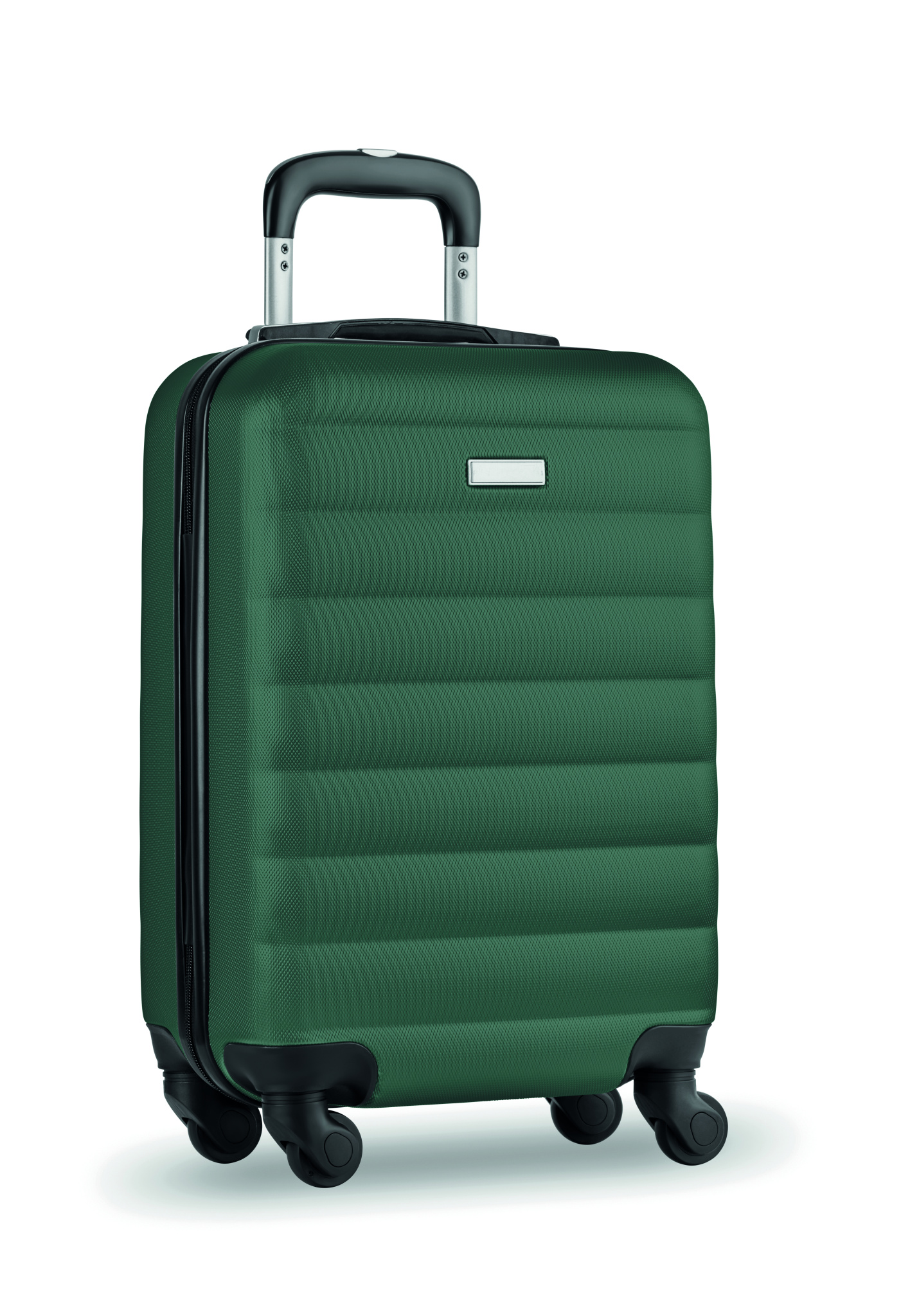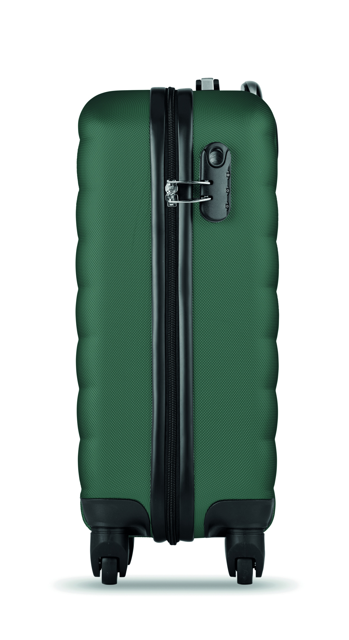 Чемодан из прочного пластика, с запирающим шифром. Внутри 2 одинаковых отделения: одно застегивается на ремешок, второе-на молнию. Чемодан вращается на 360 градусов и подходит для ручной клади.