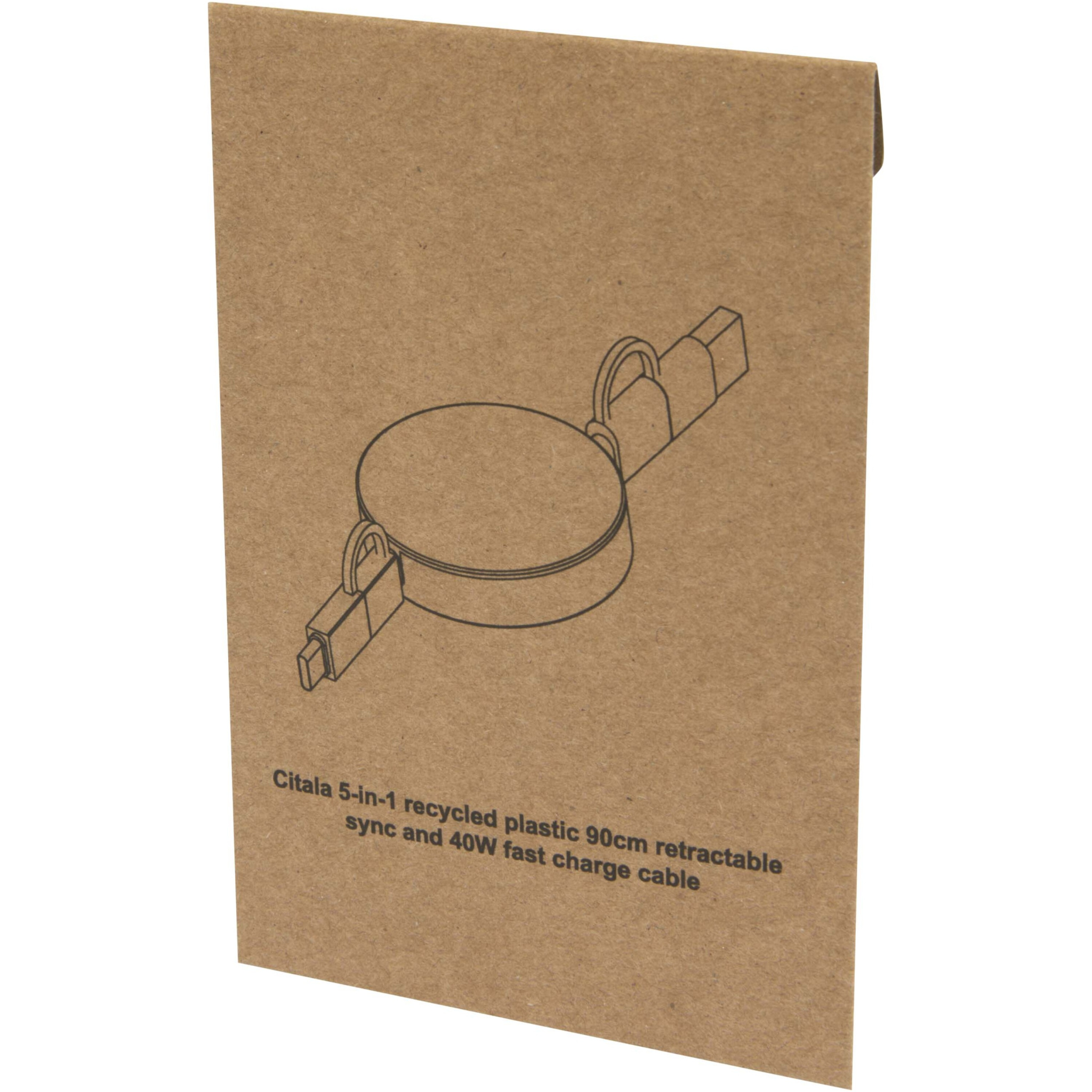 Citala 5-в-1 выдвижной кабель синхронизации данных и быстрой зарядки мощностью 40 Вт изготовлен из переработанного пластика. Этот кабель оснащен входными разъемами USB-A и Type-C в сочетании с выходным разъемом 2-в-1 Type-C и комбинированным разъемом Lightning/Micro USB. USB-C — USB-C обеспечивает выходную мощность до 40 Вт, USB-A — USB-C — до 18 Вт, а все остальные варианты подключения — до 15 Вт. Совместим с CarPlay и Android Auto. Независимо от того, находитесь ли вы дома, в офисе или в дороге, кабель Citala обеспечивает производительность и стиль в одном компактном корпусе. Длина кабеля: 90 см.