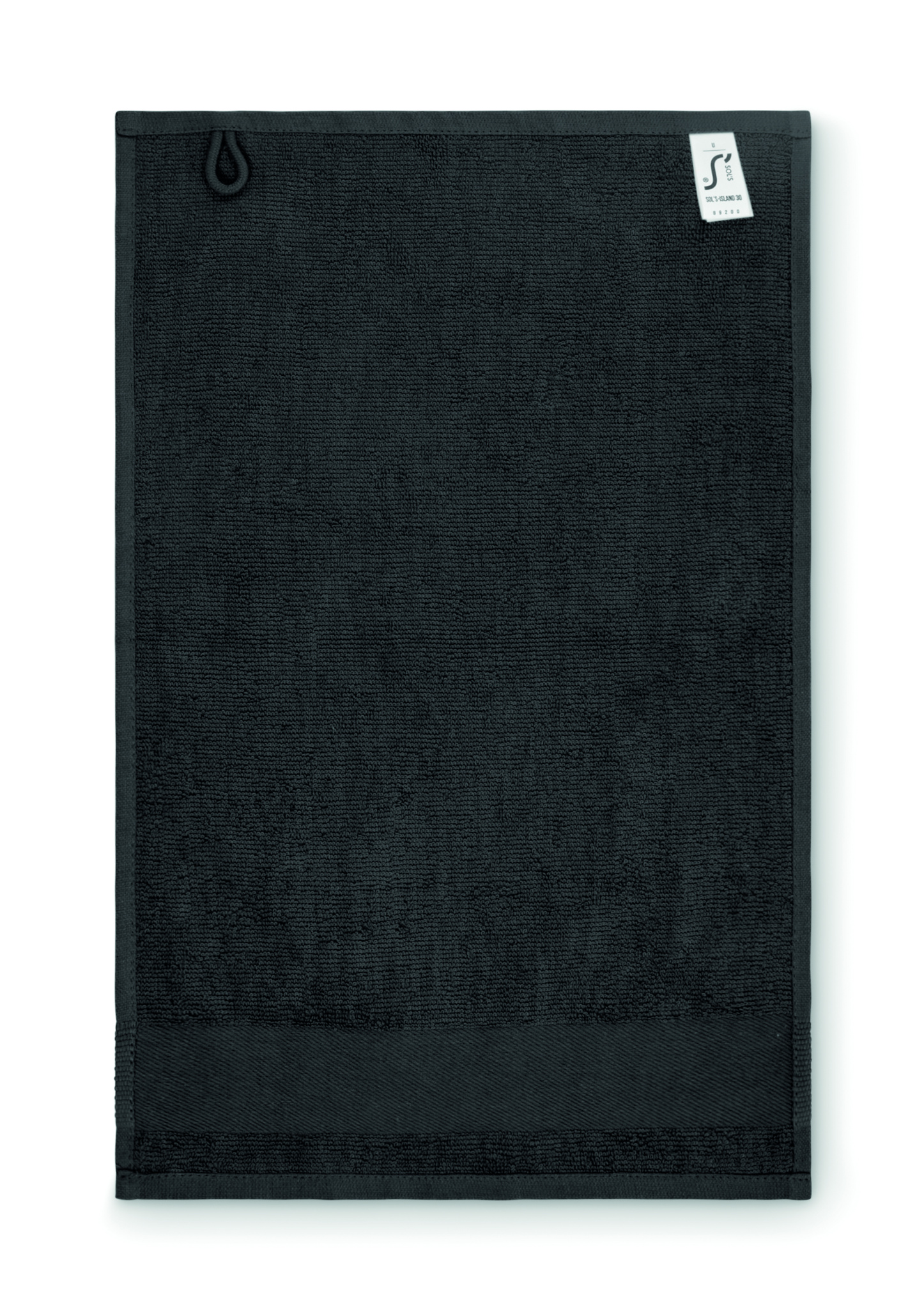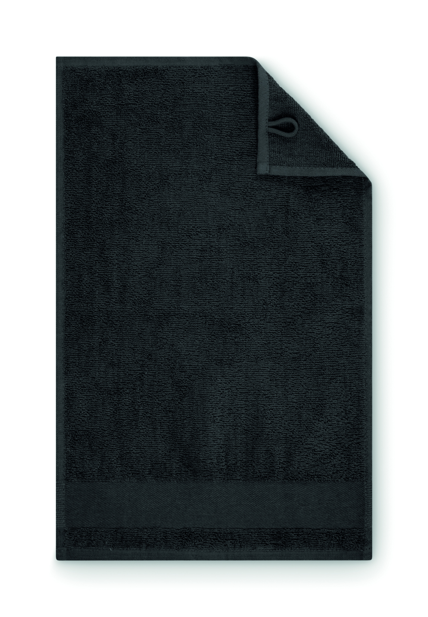 Guest towel made of 100% cotton, 380 gr/m² fabric with cotton hanger loop. Soft and absorbent design. Size 30 cm x 50 cm.