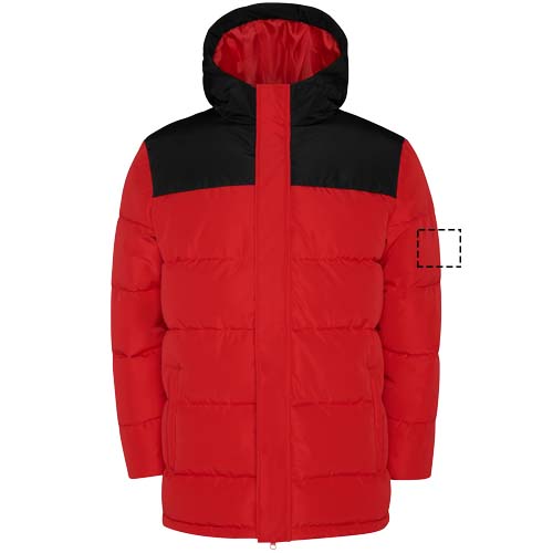 Утепленная куртка с фиксированным капюшоном. Передняя молния прикрыта планкой. Защита подбородка. Два боковых кармана на молнии. Эластичные манжеты.