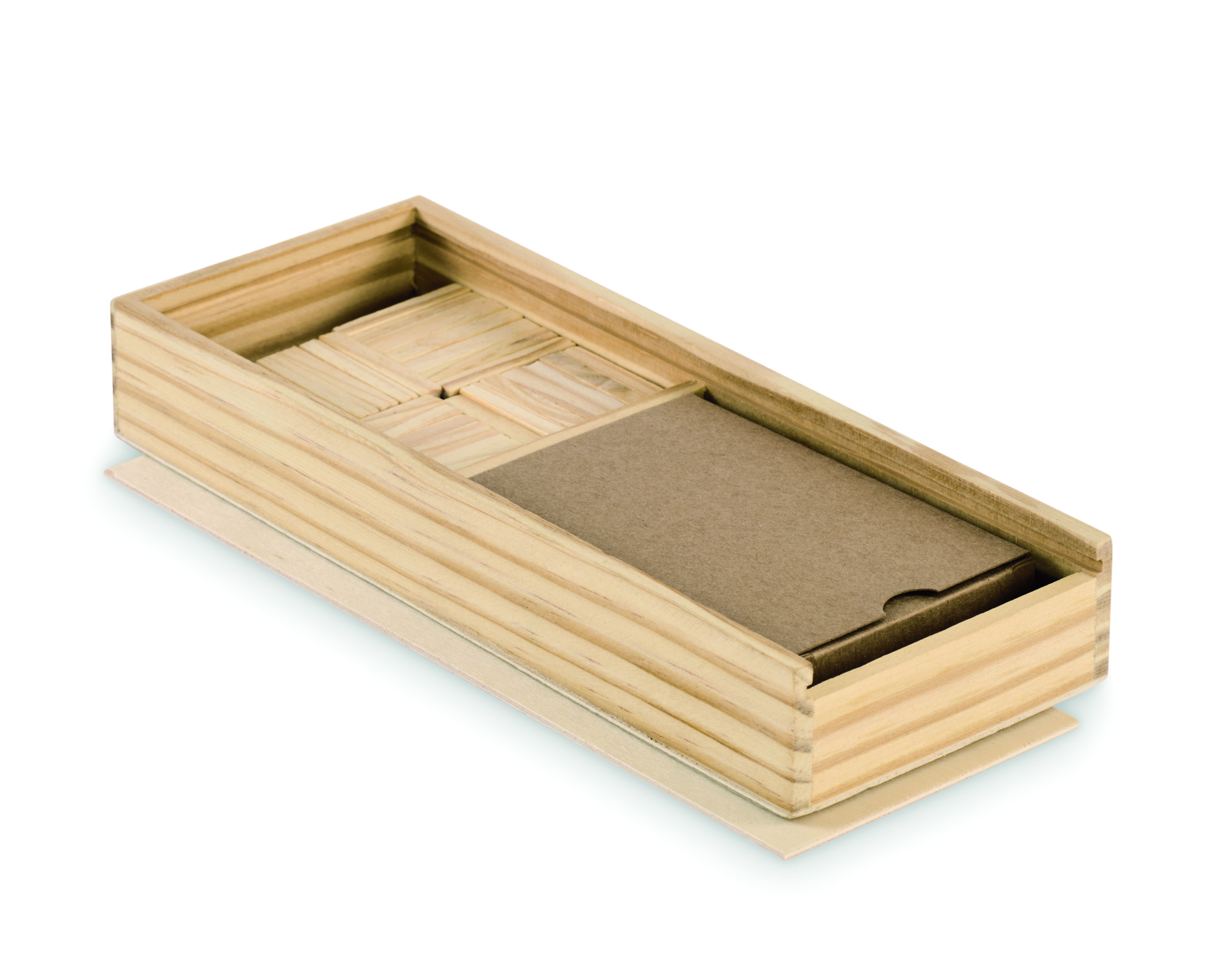 Wooden domino and recycled paper playing cards set. Presented in MDF box.