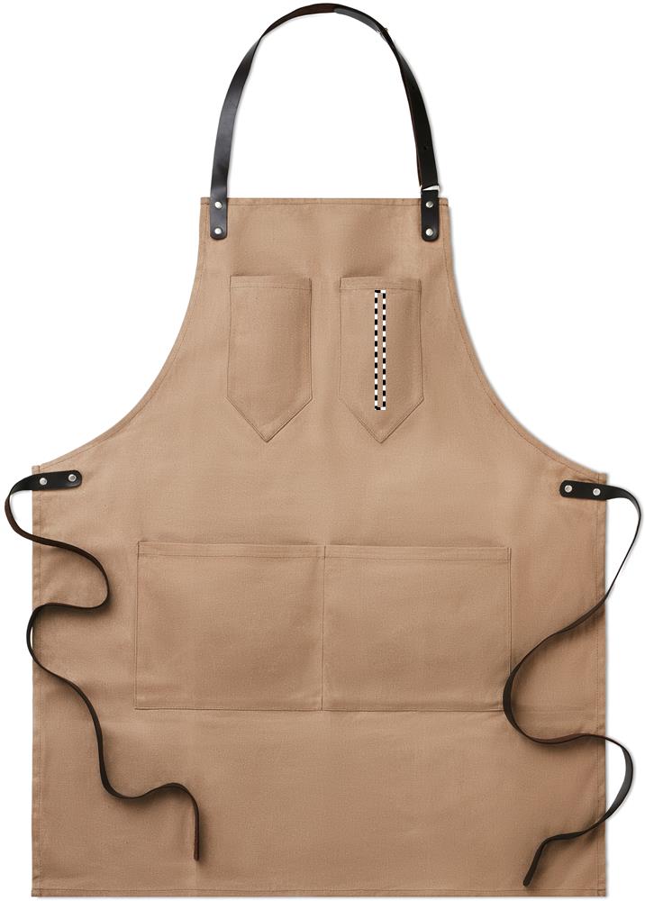 Фартук из плотного хлопка с завязками из кожзама.