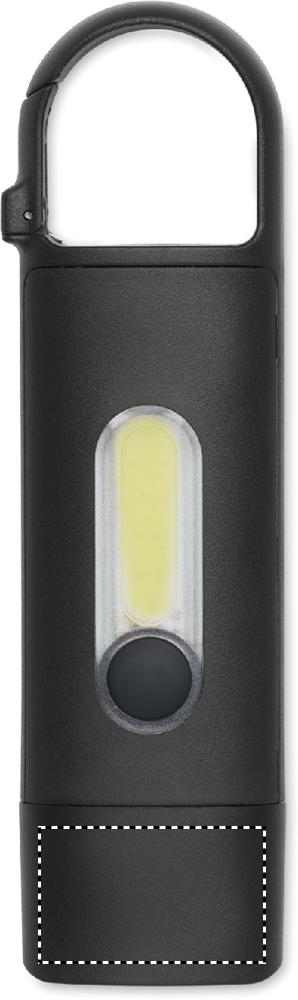 Карманный перезаряжаемый светодиодный фонарик с карабином из пластика. Аварийный режим свечения и 3 режима освещения.