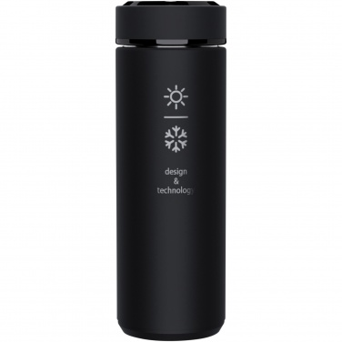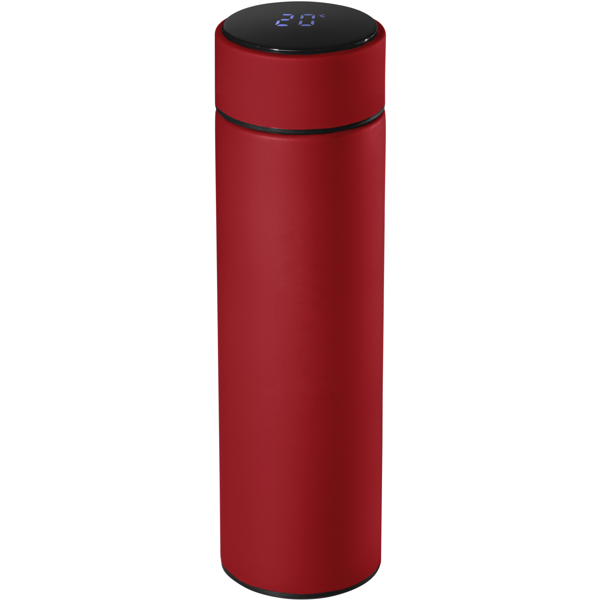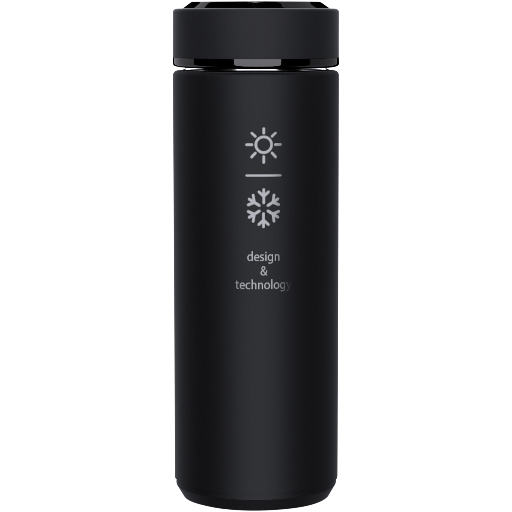 Герметично закрывающаяся бутылка из нержавеющей стали 500 мл с двойными стенками. Бутылка оснащена датчиком температуры. Благодаря системе «Touch & Light» температура напитка отображается на крышке бутылки (в градусах Цельсия). Подходит как для горячих, так и для холодных напитков. Поставляется в цилиндрической подарочной коробке из бумаги вторичной переработки. Размер: Ø 47 x 225 мм. Несъемный аккумулятор в комплекте: CR 2450 (3 В). Температура может отображаться 20 000 раз.