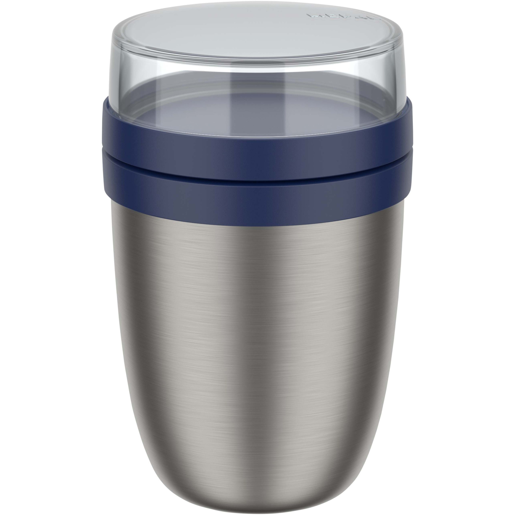 Герметичный пищевой контейнер с двумя раздельными отделениями, позволяющими хранить различные продукты отдельно друг от друга. Оба контейнера имеют отдельную крышку, чтобы ингредиенты не смешивались. Еда останется горячей в течение 6-8 часов и холодной в течение 12 часов. Объем верхнего прозрачного контейнера составляет 200 мл. Емкость нижнего контейнера составляет 500 мл. Изготовлен из прочного материала, внешняя часть контейнера остается холодной и сухой. Рекомендуется ручная мойка. Пластиковые части крышки можно мыть в посудомоечной машине.