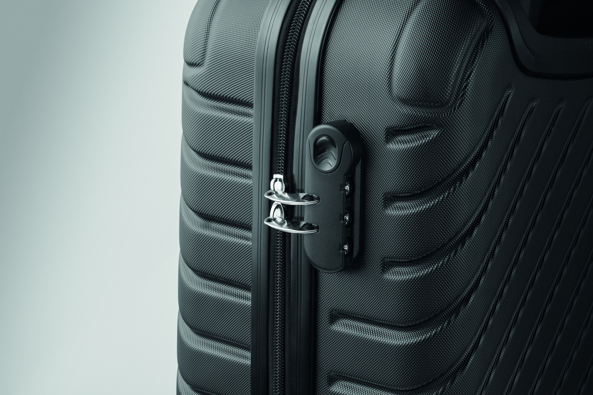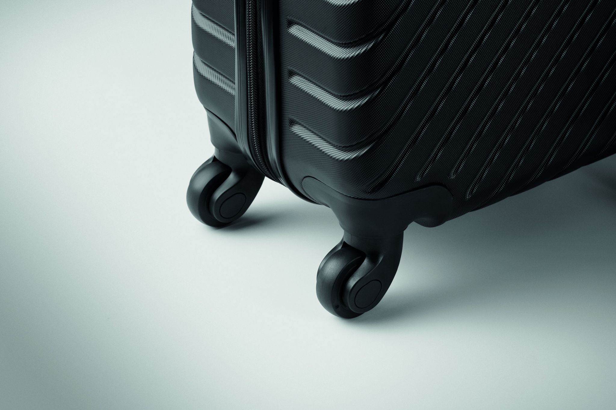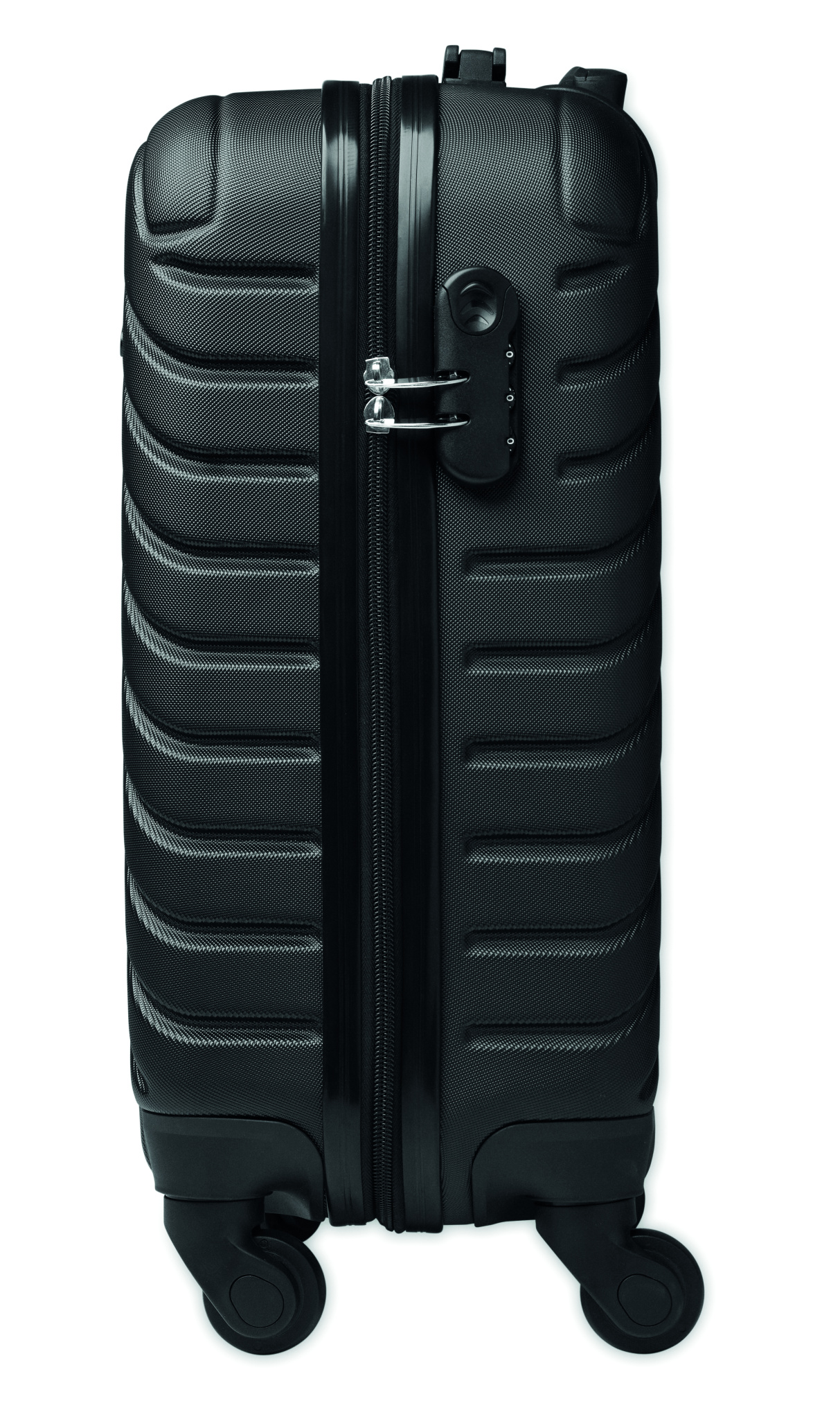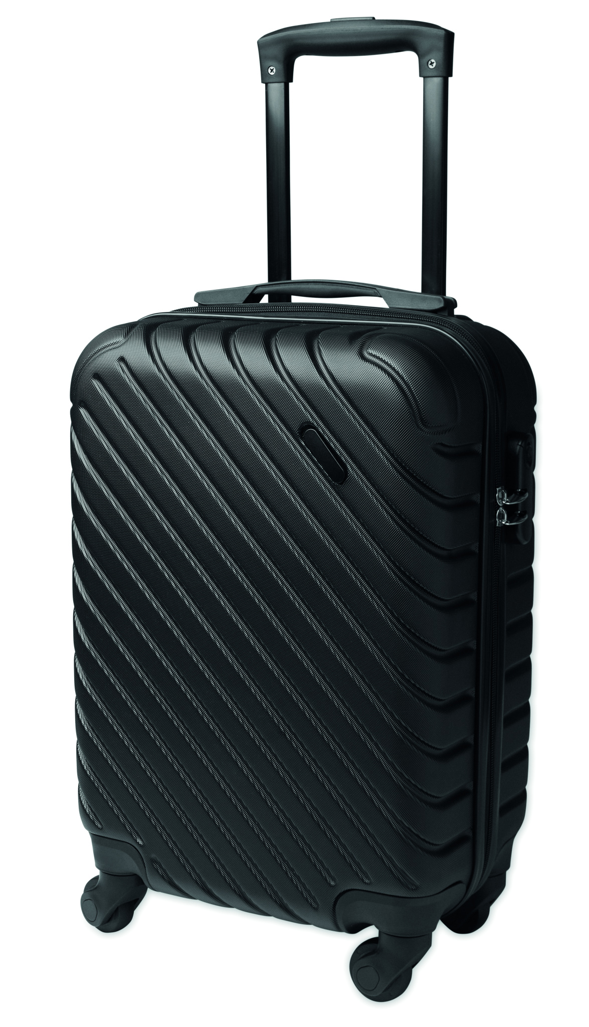 18 inch hard-shell trolley in ABS. 1 main compartment and inner compartment. Includes a security lock. Rides on 4 wheels.
