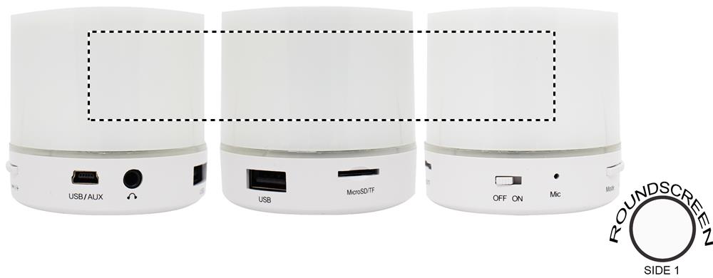 Колонка беспроводная круглой формы, переливающаяся 3 цветами. Есть функция хэндс фри ответа на звонок. Имеется разъем для SD карты и AUX/USB кабель. Работает от литий- ионного аккумулятора 450 мАч (включен).