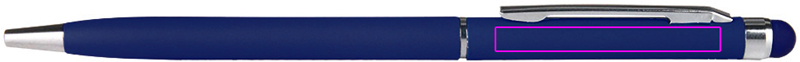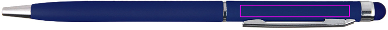Шариковая ручка из нержавеющей стали с синим пластиковым стержнем и цветной сенсорной функцией над зажимом. Мы выгравируем ваш логотип под зажимом.