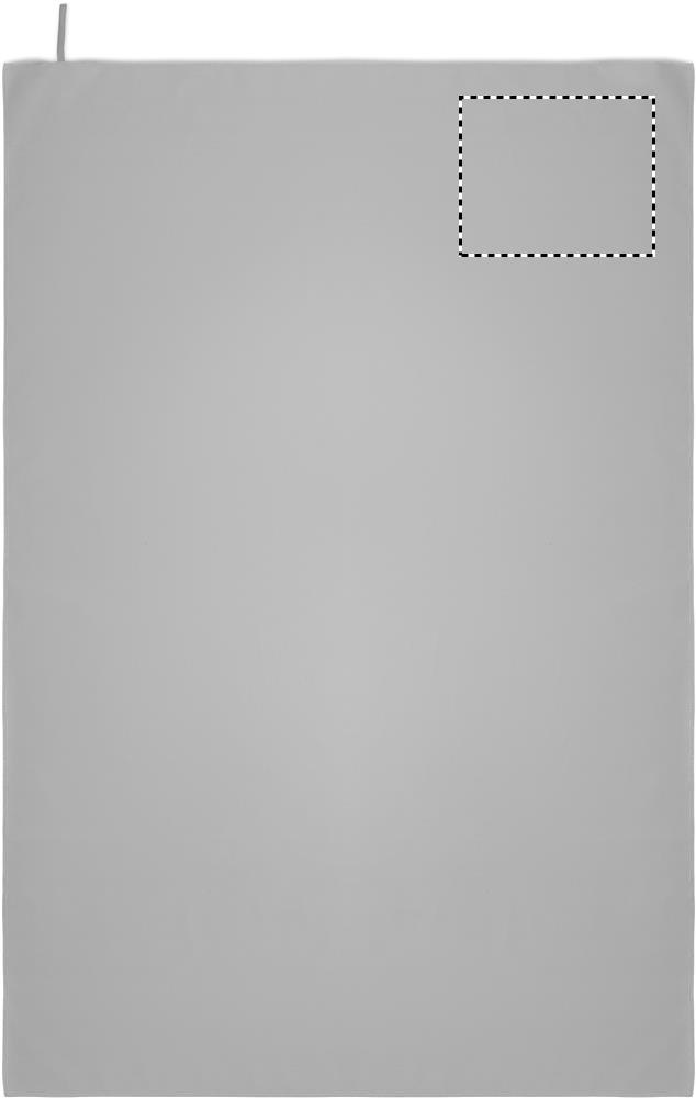 Microfibre towel made of 90% polyester and 10% polyamide with elastic hanger loop. Lightweight and quick drying. Size 100 cm x 150 cm.