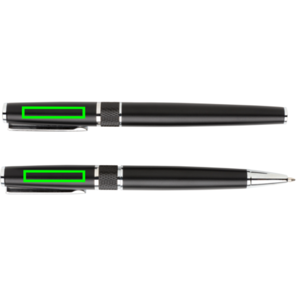 Этот роскошный набор ручек привнесет элегантность и стиль в ваши письма. Набор состоит из шариковой ручки и роллера с синими чернилами в красивой подарочной коробке с тисненым логотипом. Ручка имеет стержень Dokumental с шариком t/c для сверхгладкого письма. Роллер имеет синий стержень Dokumental. Средняя длина письма для обеих ручек составляет 1200 метров.