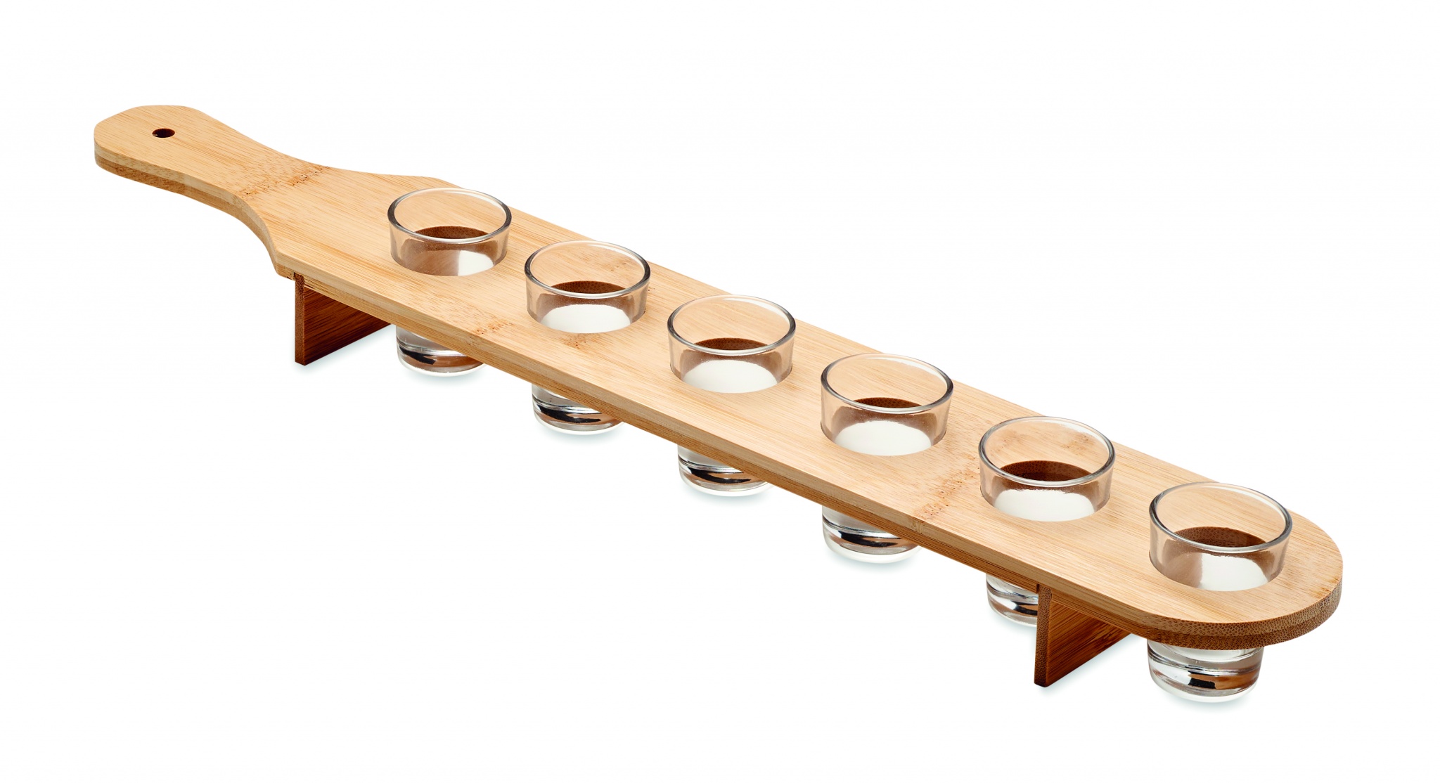 Набор из 6 рюмок на бамбуковой подставке. Емкость: 20 мл.