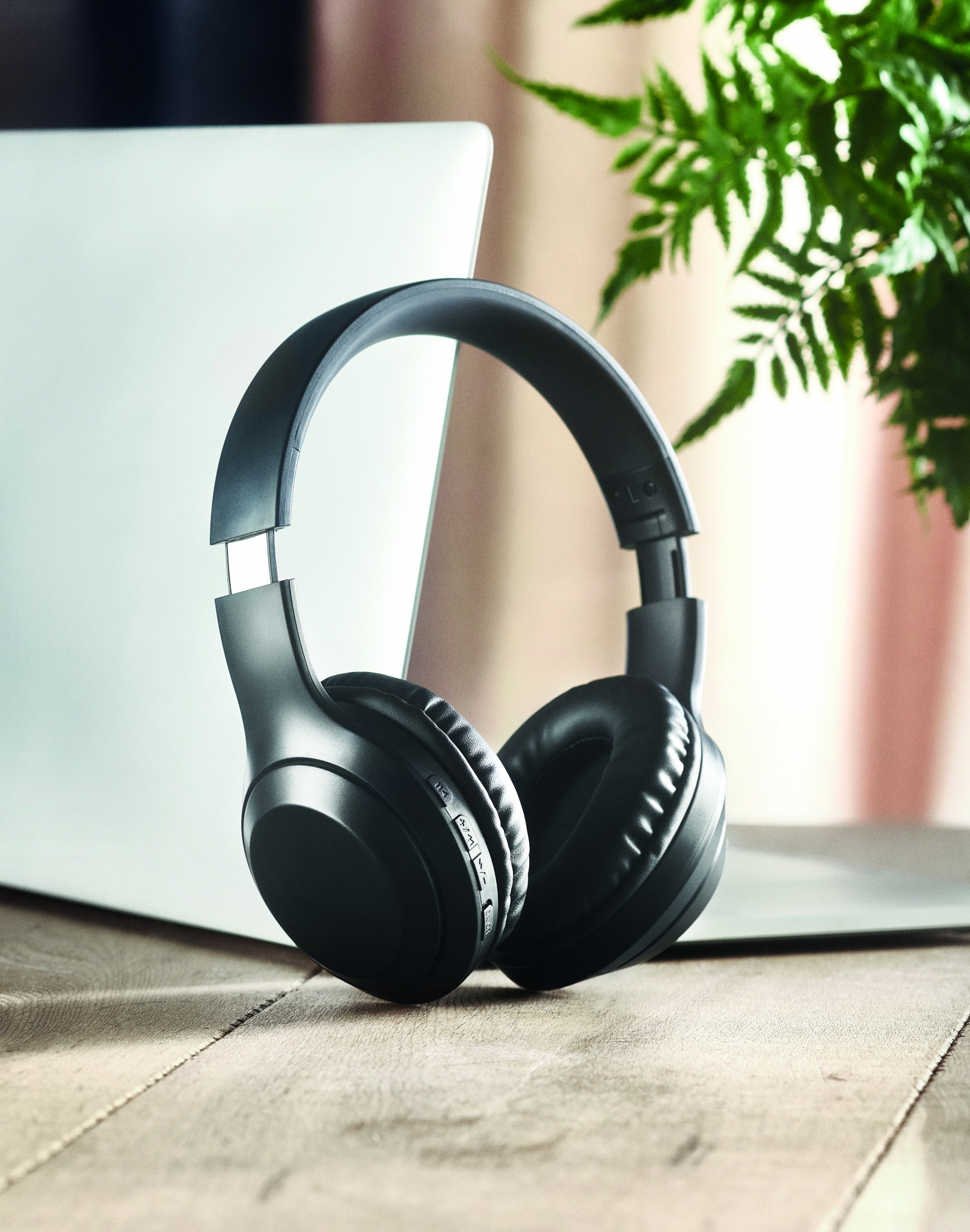 "Беспроводные складные наушники. Поставляются в хлопковом мешочке. Аккумулятор 200 мАч. Функция ""hands free"" и микрофон. Время работы около 4 часов. В комплекте кабель для зарядки micro USB"