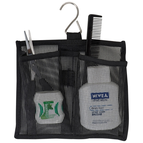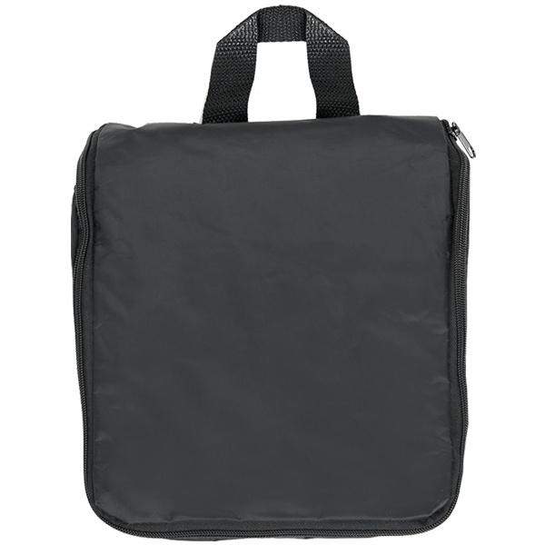 Наша рекомендация по сумке для туалета! Это то, что вам нужно! Изготовлена из прочного нейлона - внутри достаточно места, есть прозрачное отделение на молнии, эластичная лента с 5 петлями, 3 больших сетчатых отделения и 2 сетчатых отделения с металлическим крючком, которые вы можете вынуть с помощью застежки-липучки, чтобы повесить в душе, например, шампунь или гель для душа. Сумка имеет объемную молнию на 270 градусов и еще один металлический крючок для подвешивания. Это практично и удобно! Мы напечатаем ваш логотип на передней части сумки.