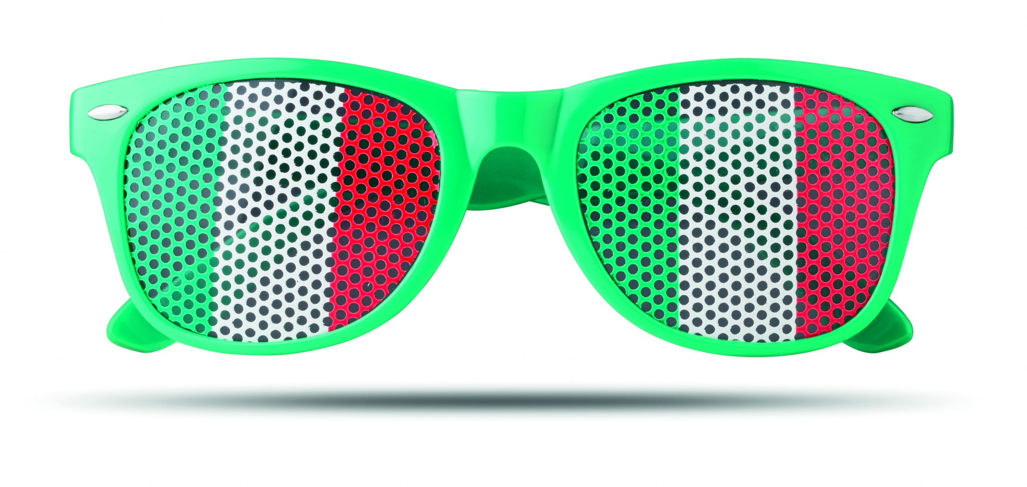 Очки болельщика с наклейкой-флагом страны. Изготовлены из пластика, UV400.