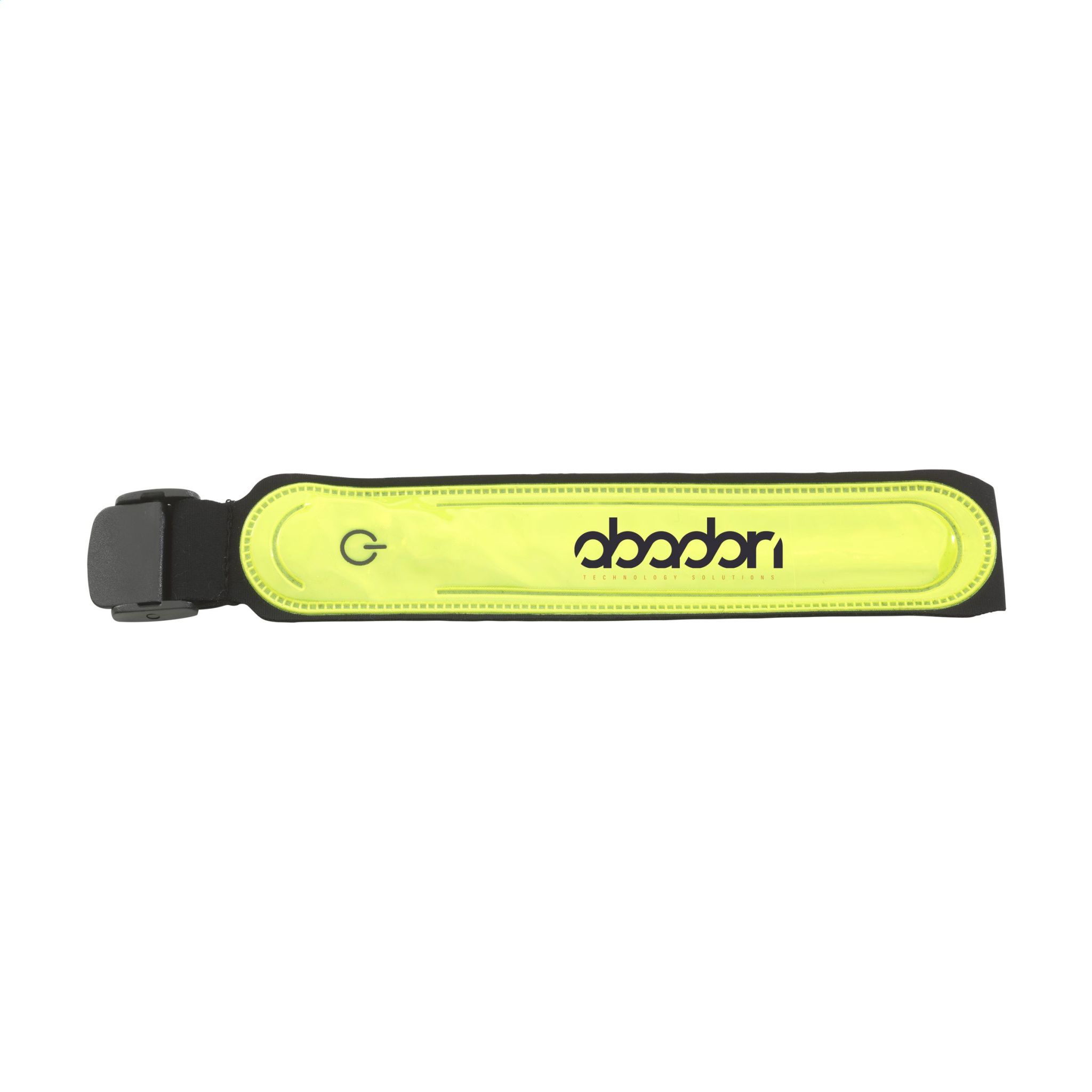 Оставайтесь заметными с этой регулируемой эластичной повязкой на руку с флуоресцентной полосой и светодиодной подсветкой. Установите 3 режима: быстрое мигание, медленное мигание или непрерывный свет. С удобной пластиковой застежкой. Включает батарею.