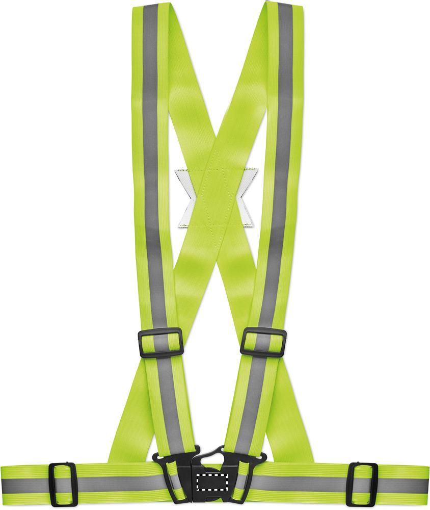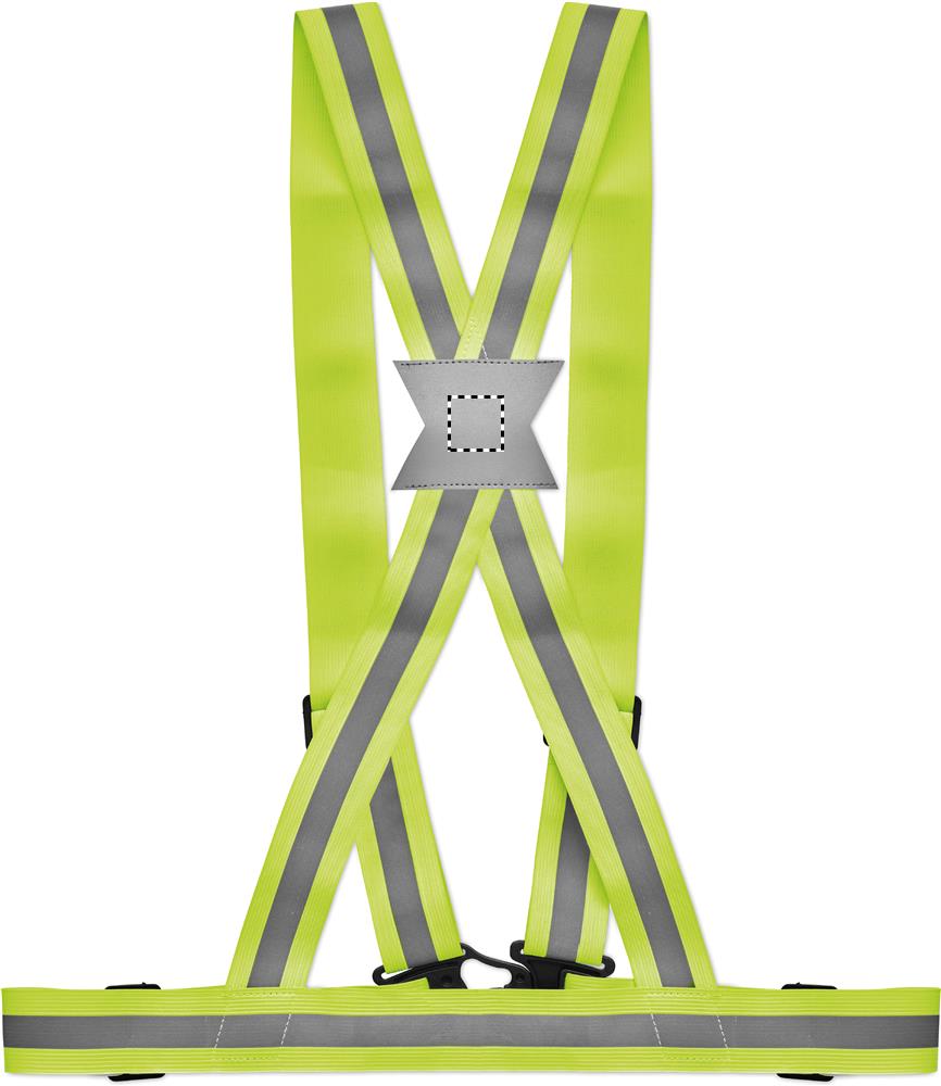 Яркий регулируемый светоотражающий ремень с серебряными полосками. Использовать только для рекламных целей.