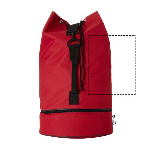 Водонепроницаемый спортивный вещмешок из переработанного РЕТ-пластика с вместительным 20 основным отделением объемом 20 литров, застежкой на шнурке, боковой ручкой и регулируемым плечевым ремнем. Также имеет отдельное нижнее отделение на молнии для небольших предметов.