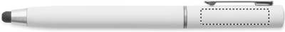 Пластиковая шариковая ручка со стилусом. Имеет набор для чистки беспроводных наушников (TWS): металлическое перо, губка и щеточка. Синие чернила.