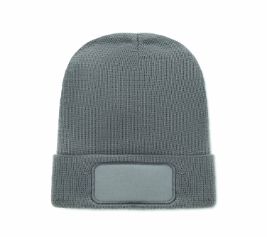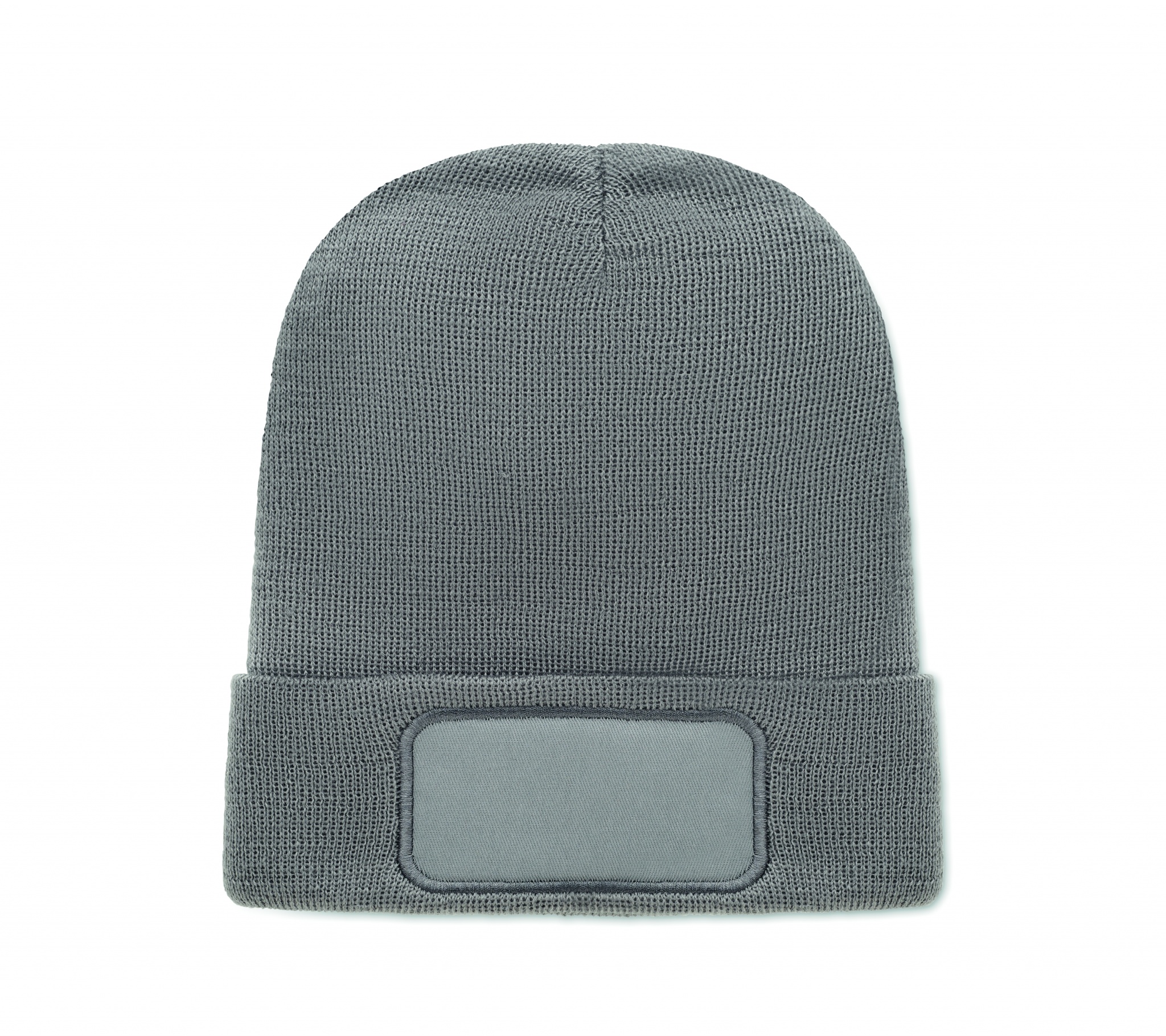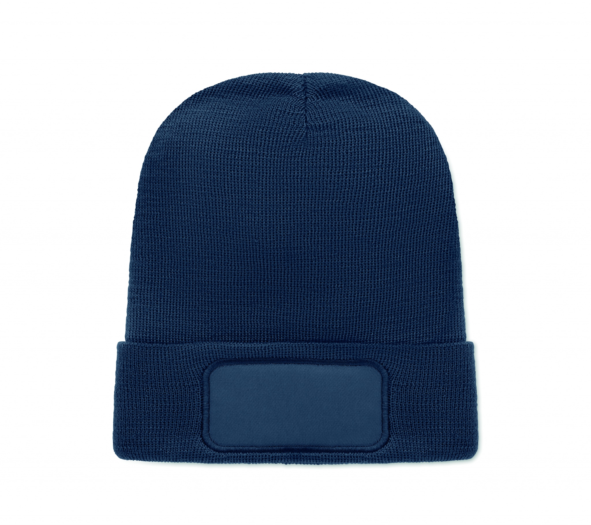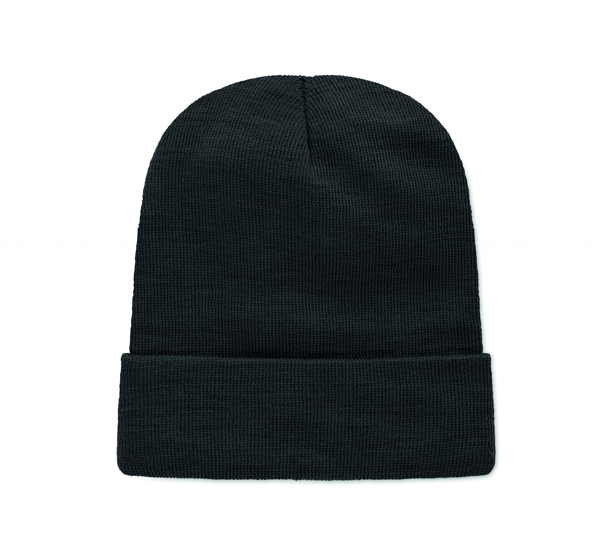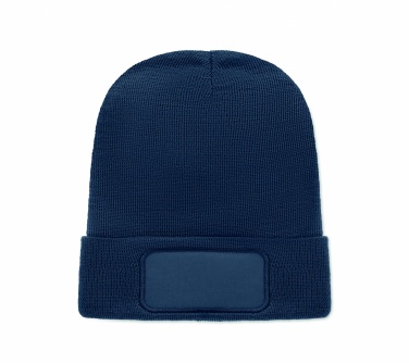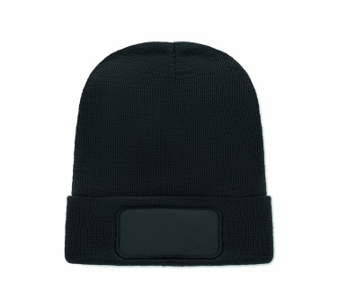 Трикотажная шапка унисекс из мягкого переработанного полиэстера с манжетой и нашивкой.