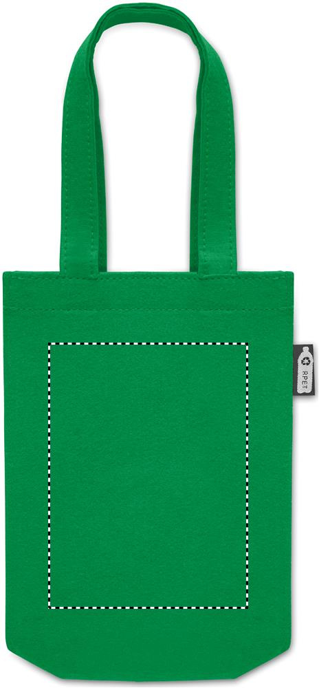 Small RPET felt gift or goodie bag with short handles and bottom gussets. Felt thickness: 1 mm.
