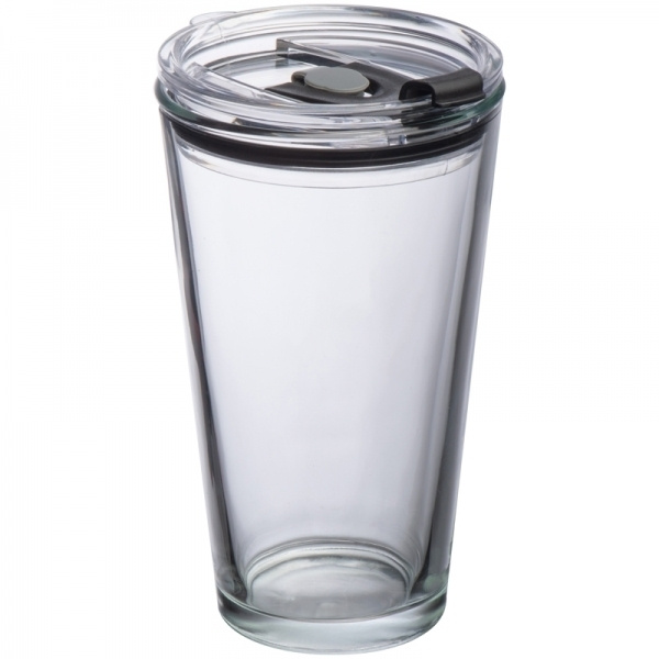 Стеклянная кружка с герметичной крышкой и объемом 400 мл. На кружке будет выгравирован ваш логотип.
