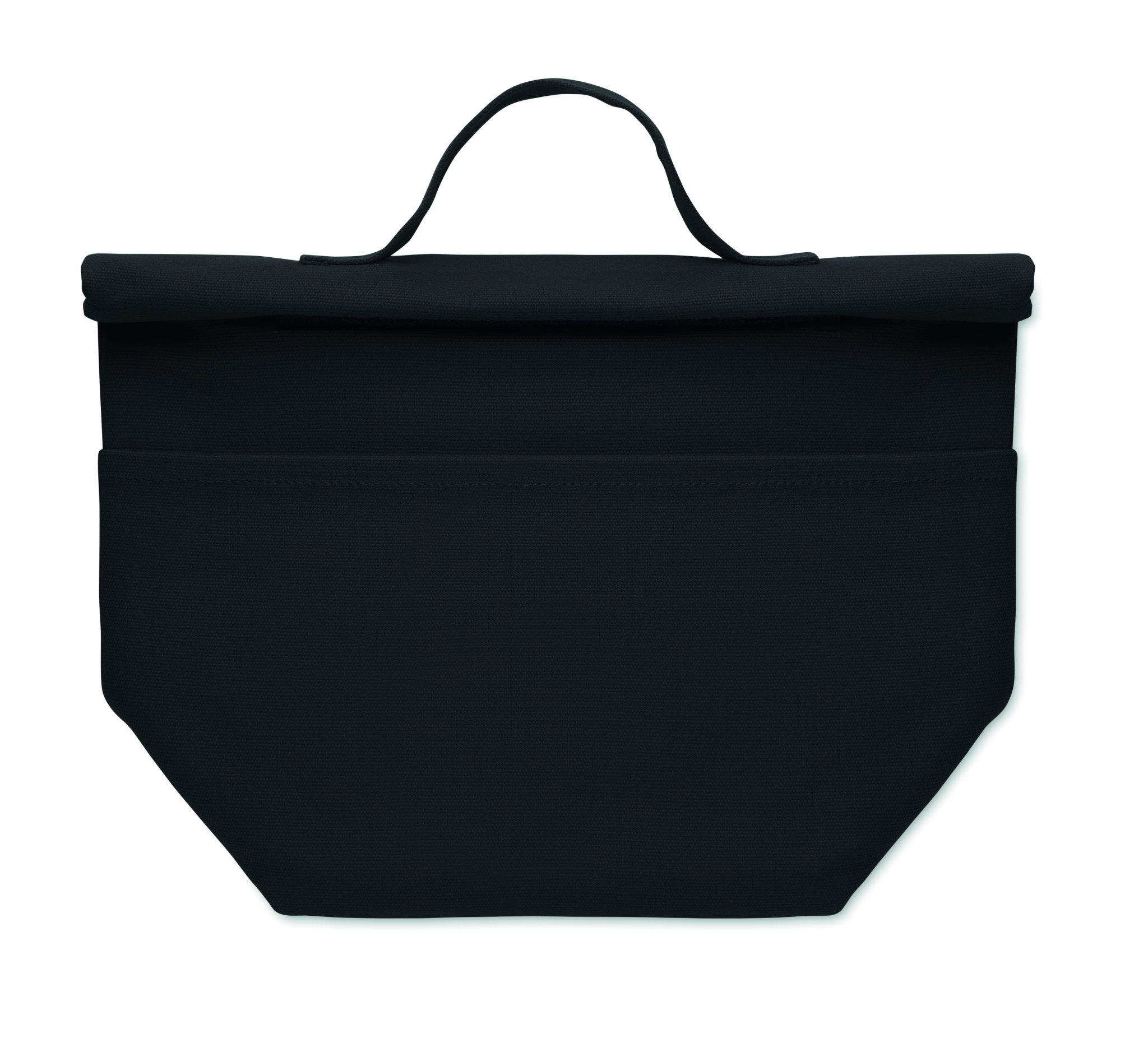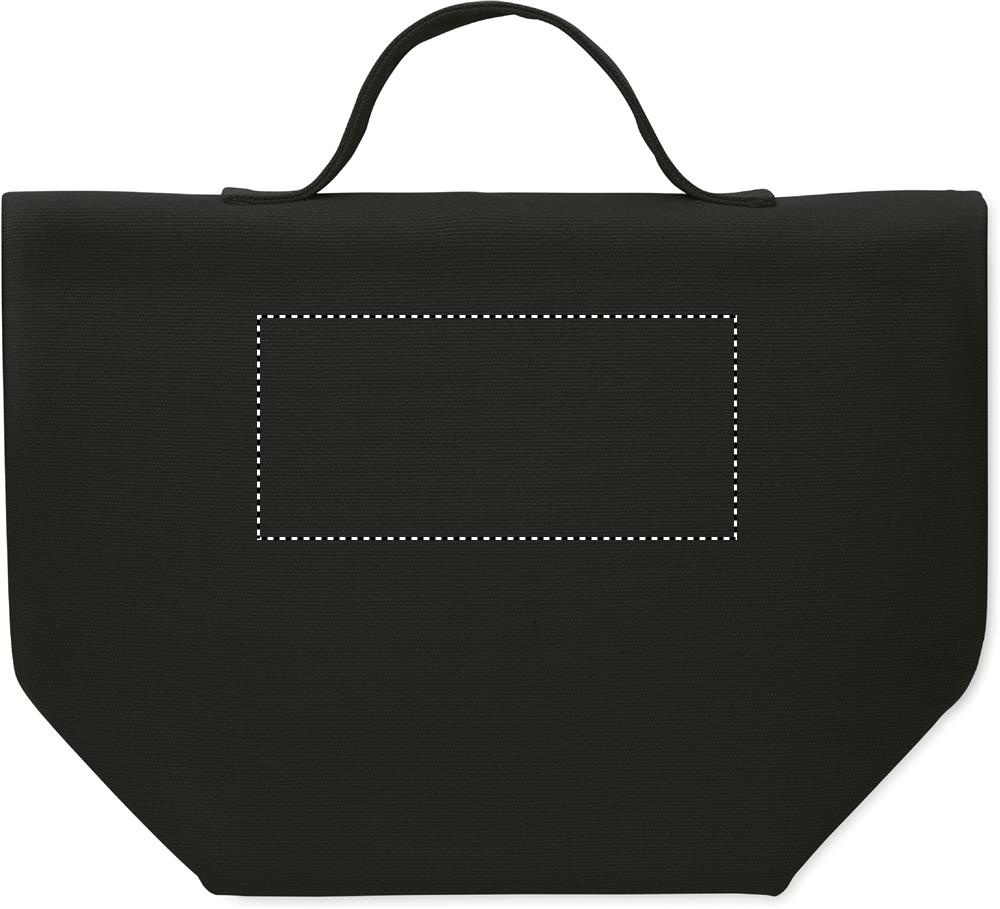 Recycled cotton (70% recycled cotton, 30% recycled polyester) insulated lunch cooler bag with rolltop hook and loop closure. Insulation: 3mm PE foam with 12C PEVA.