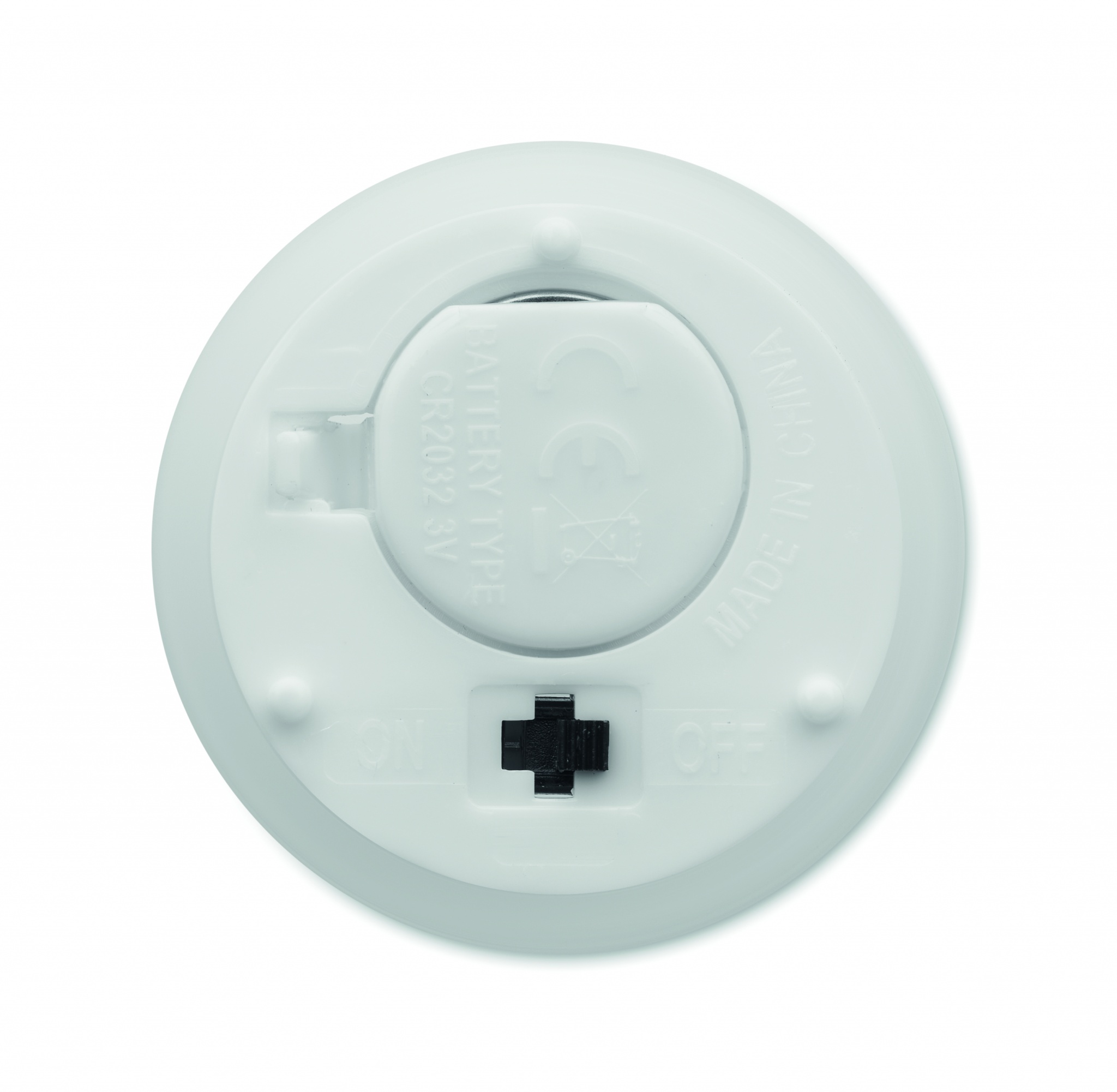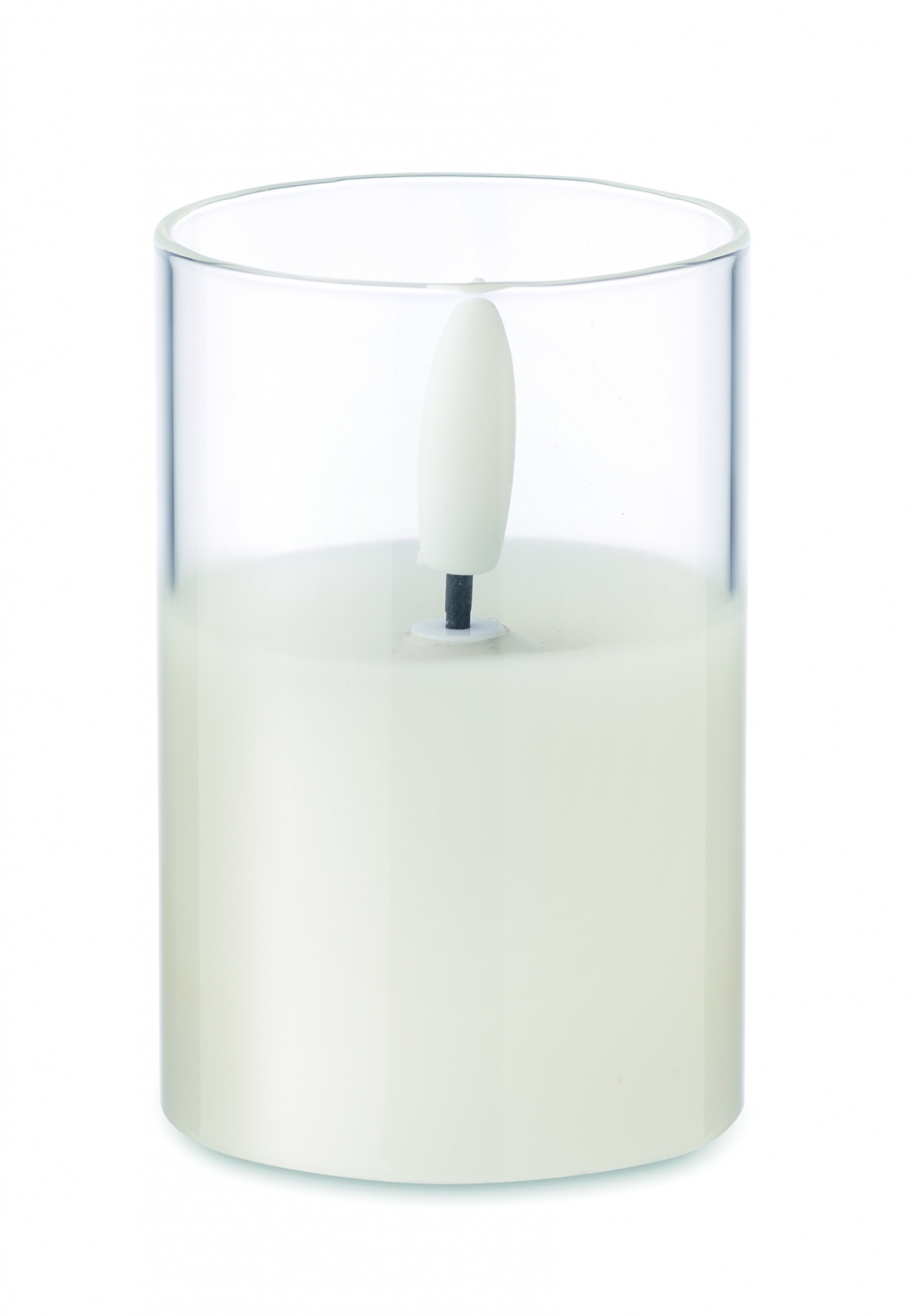 Небольшая светодиодная восковая свеча с эффектом реального пламени в стеклянном подсвечнике. В комплект входит батарейка CR2032.