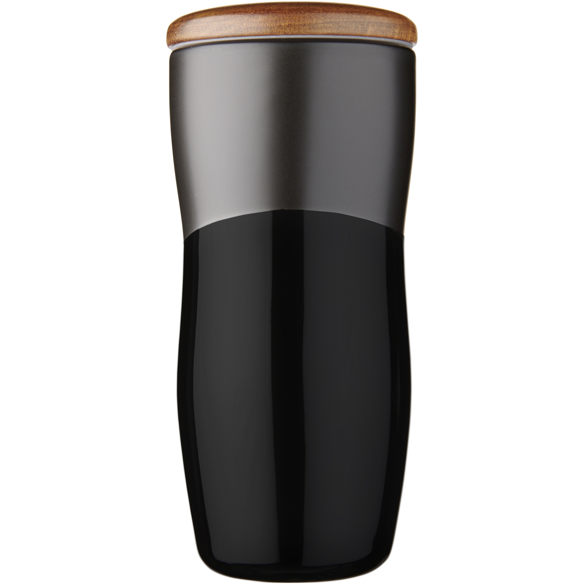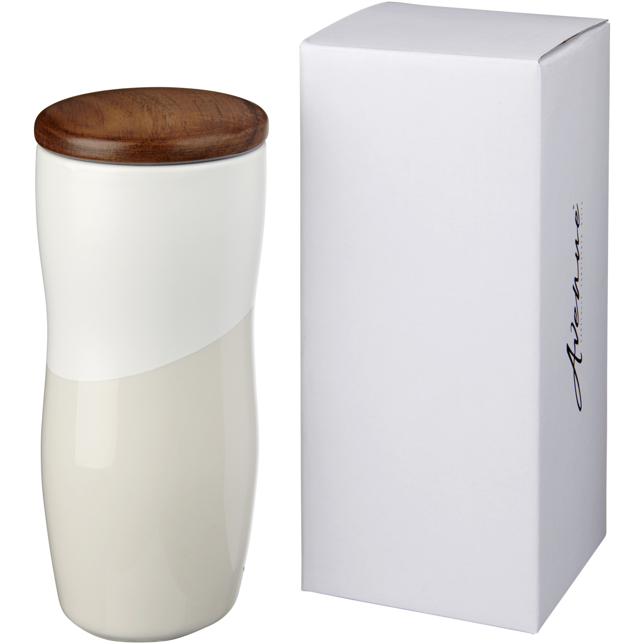 Двустенная керамическая термокружка с контрастным дизайном из матового и блестящего покрытия. Кроме того, двустенная керамическая конструкция препятствует образованию конденсата на внешней стороне стакана. Оснащена деревянной нажимной крышкой. Объем - 370 мл. Упакована в подарочной коробке Avenue.