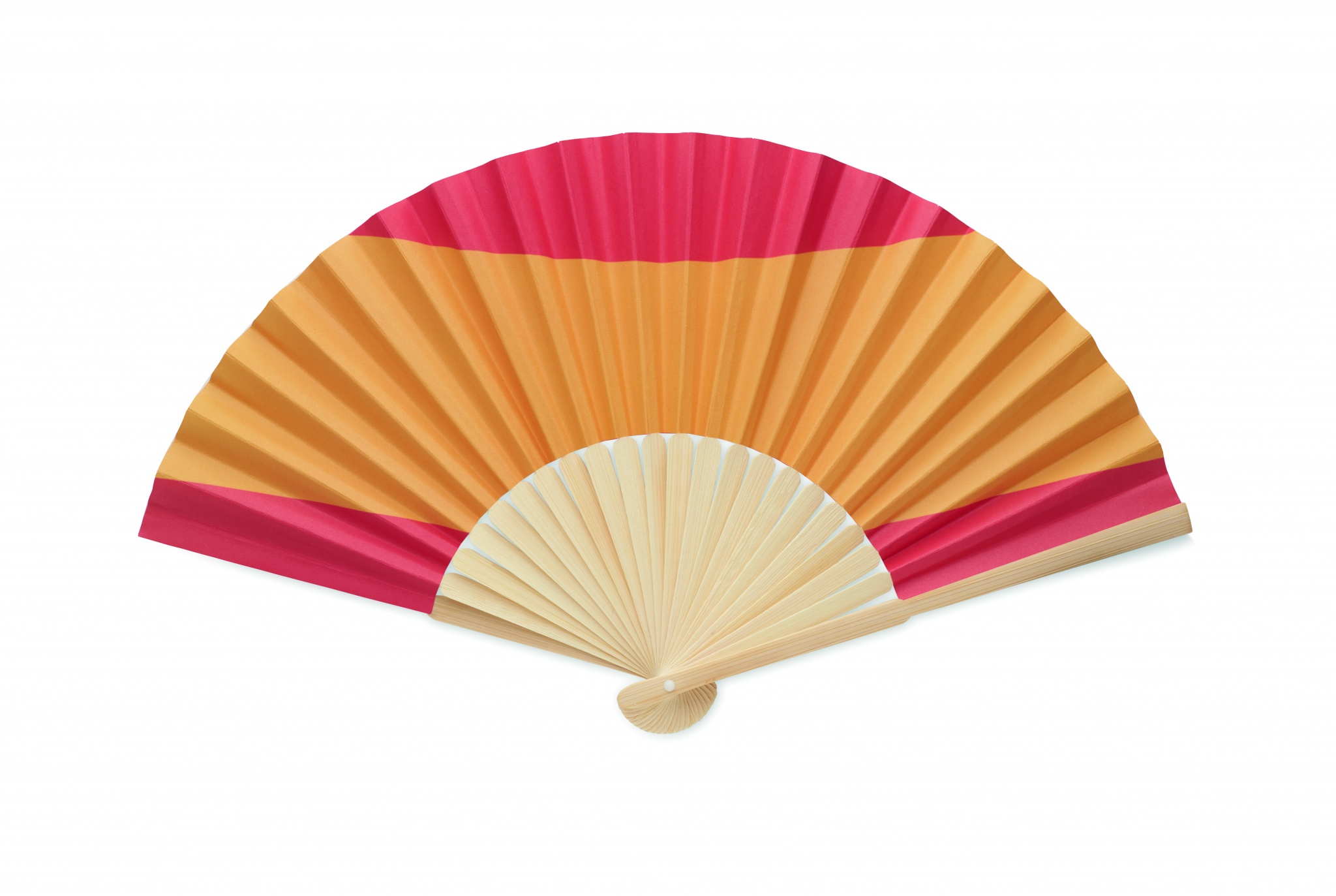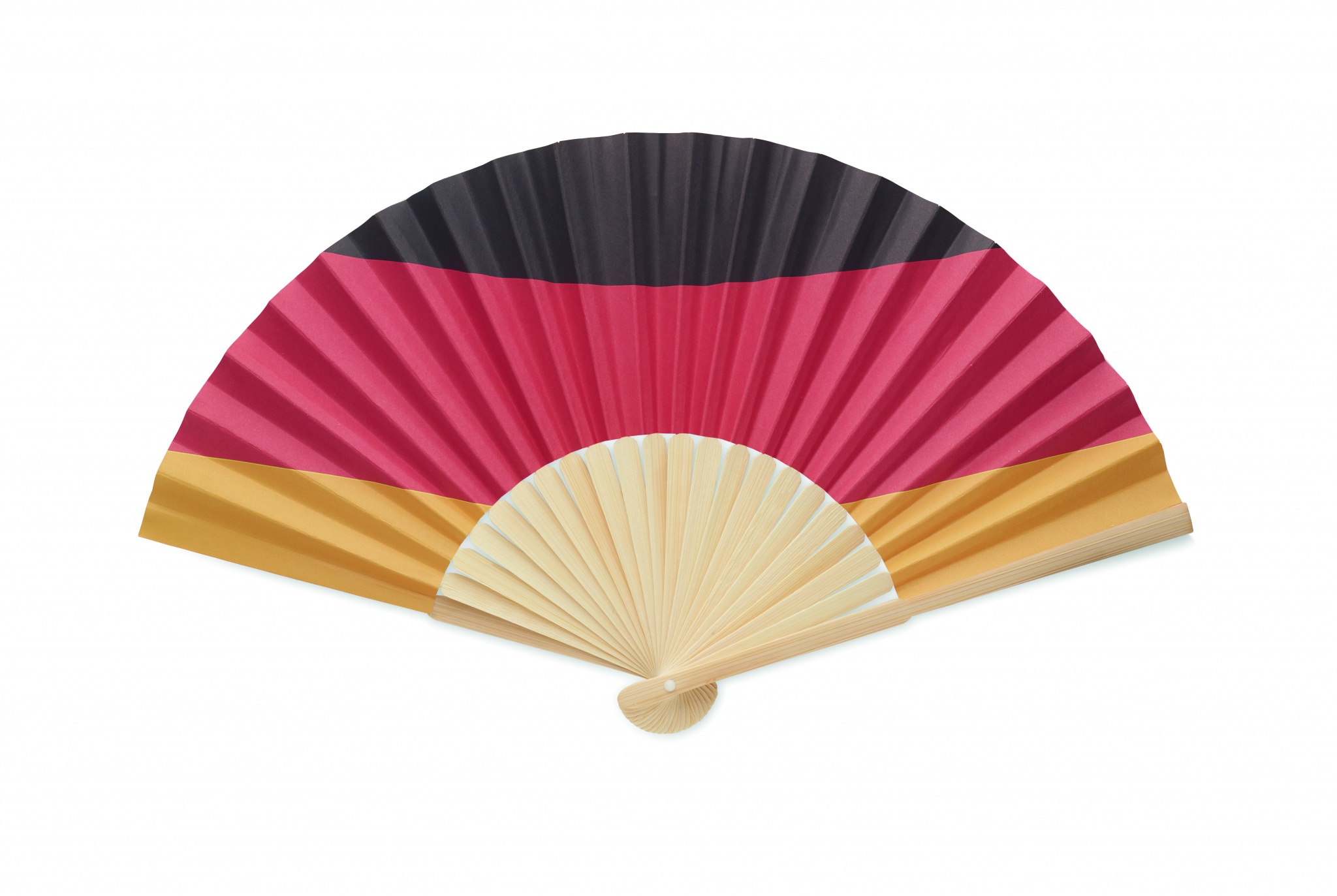 Веер с ручкой из бамбука и рисунком флага на ткани.