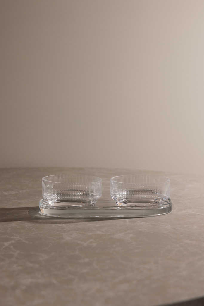 Набор для тапас с вневременным дизайном и классическими, четкими линиями. Идеально подходит для любого случая, когда вы хотите стильно и элегантно подать небольшие блюда, закуски или другие гарниры. В набор входят две миски и поднос, которые можно использовать вместе или по отдельности. Изготовлен из натриево-кальциевого стекла. Объём мисок — 250 мл. Можно мыть в посудомоечной машине.