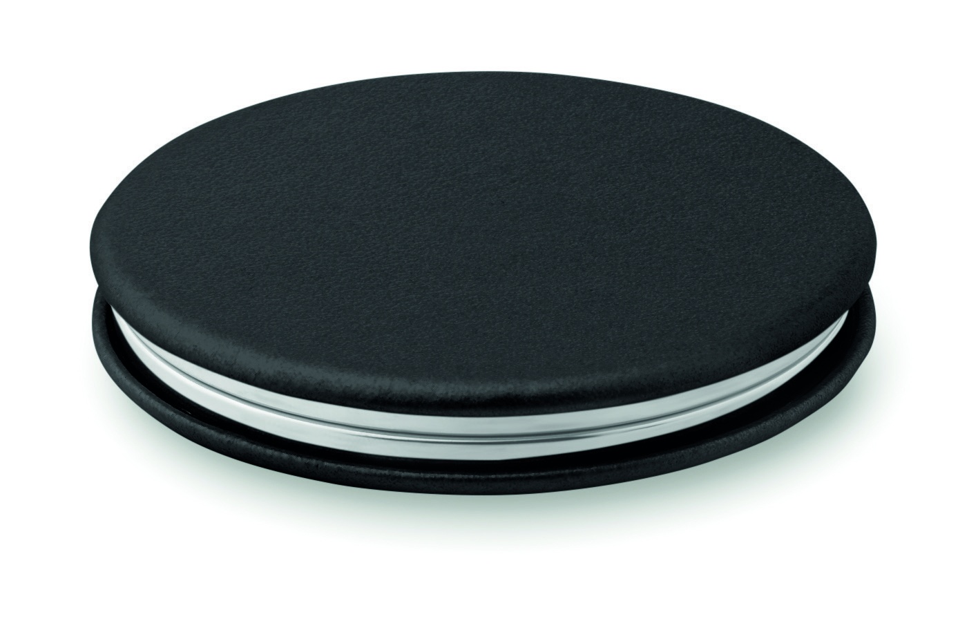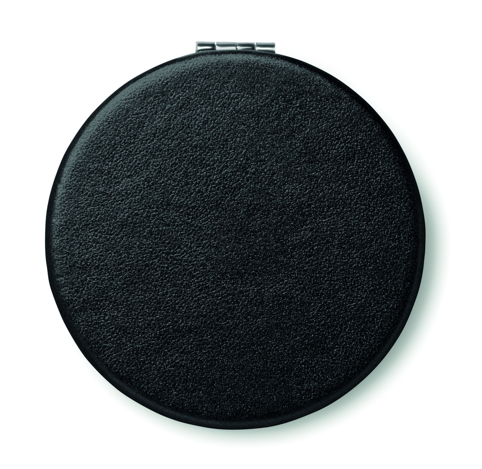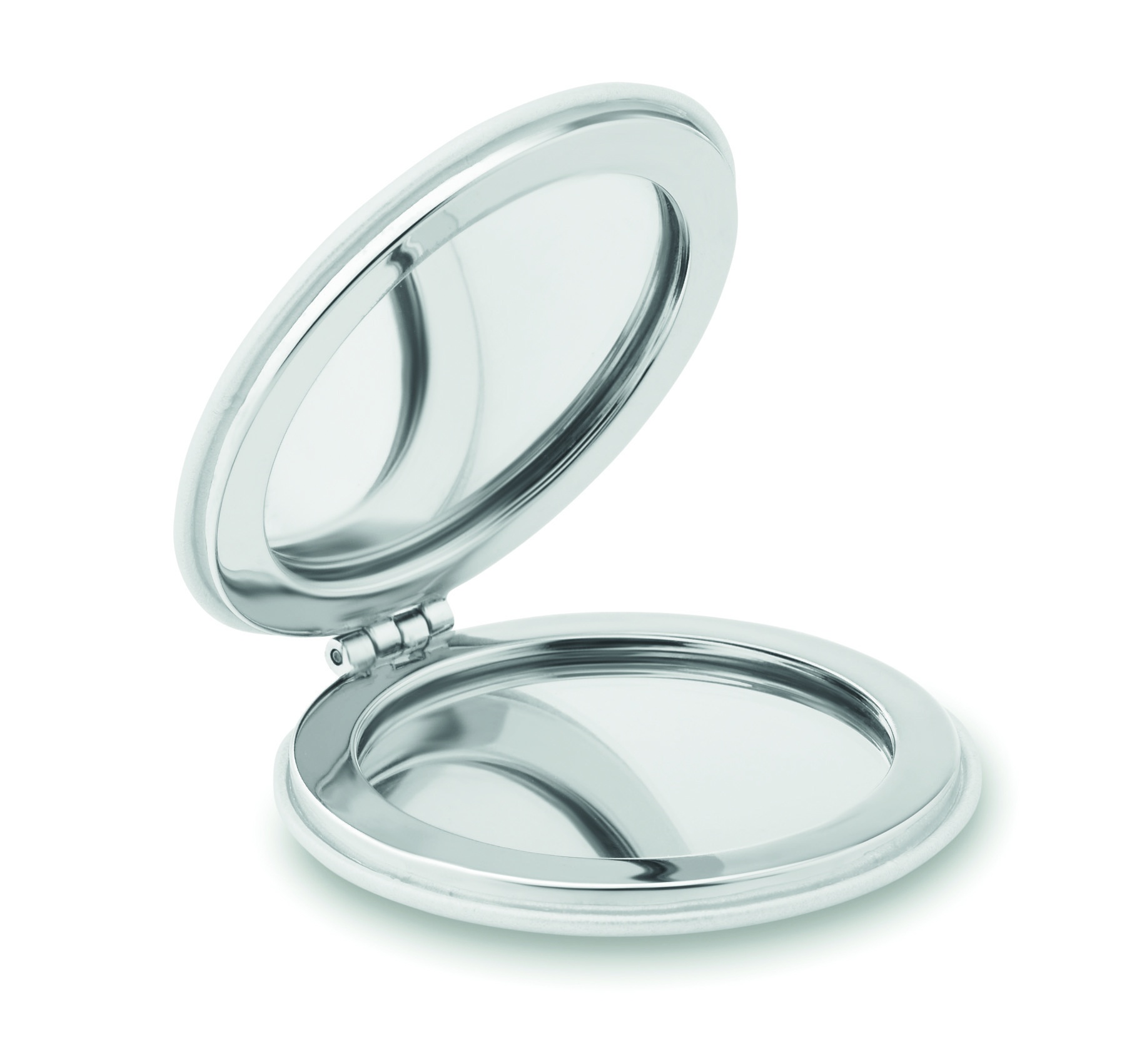 Двойное косметическое зеркальце круглой формы на магните с покрытием из полиуретана.