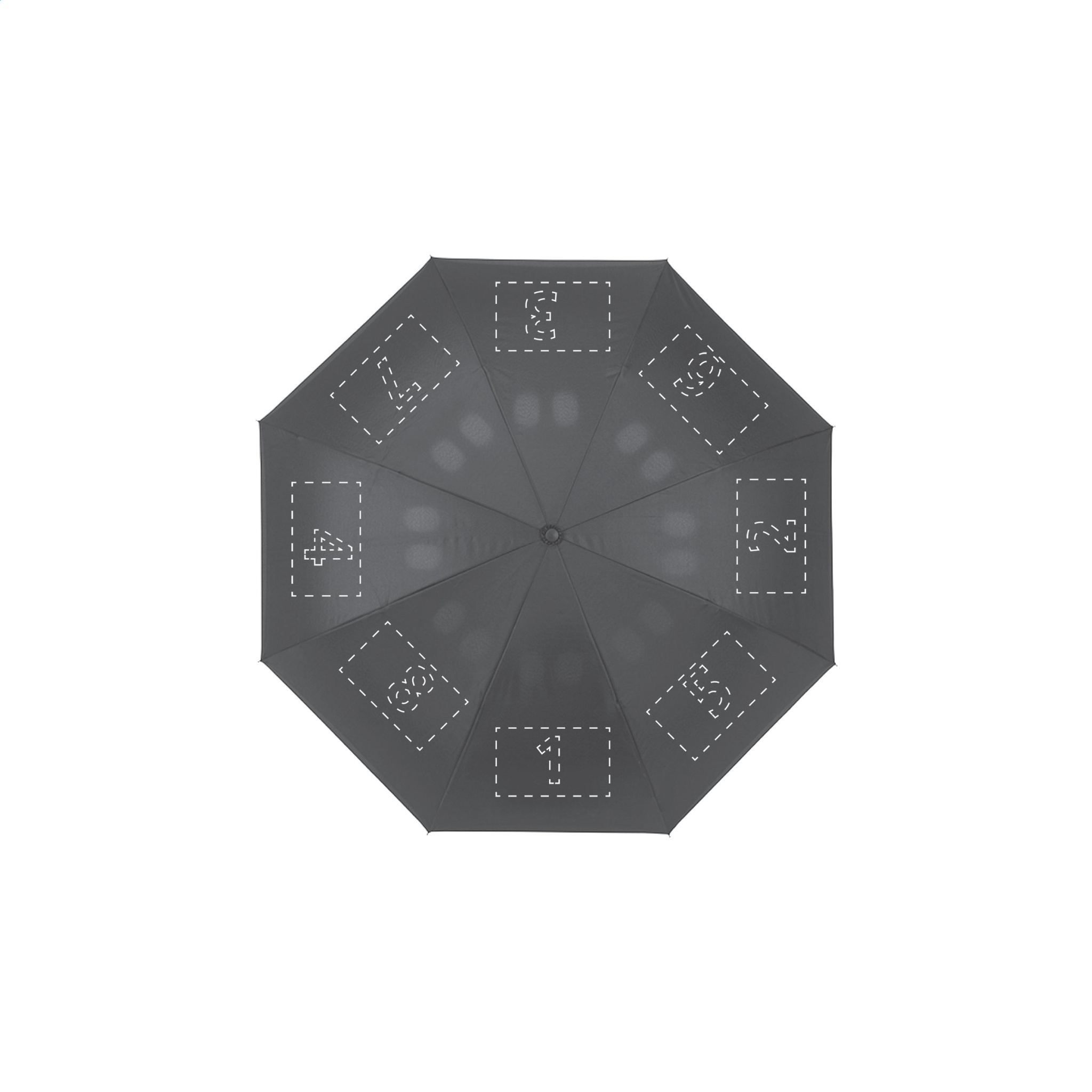 Большой инновационный зонт-перевертыш с двойными стропами из эпонжа 190T. Специальный материал, ускоряющий высыхание. Может сушиться стоя. Закрывается автоматически, открывается вручную. Идеально подходит для посадки и высадки из автомобиля. Металлический каркас с ветрозащитной системой и эргономичной ручкой с ремнем для переноски.