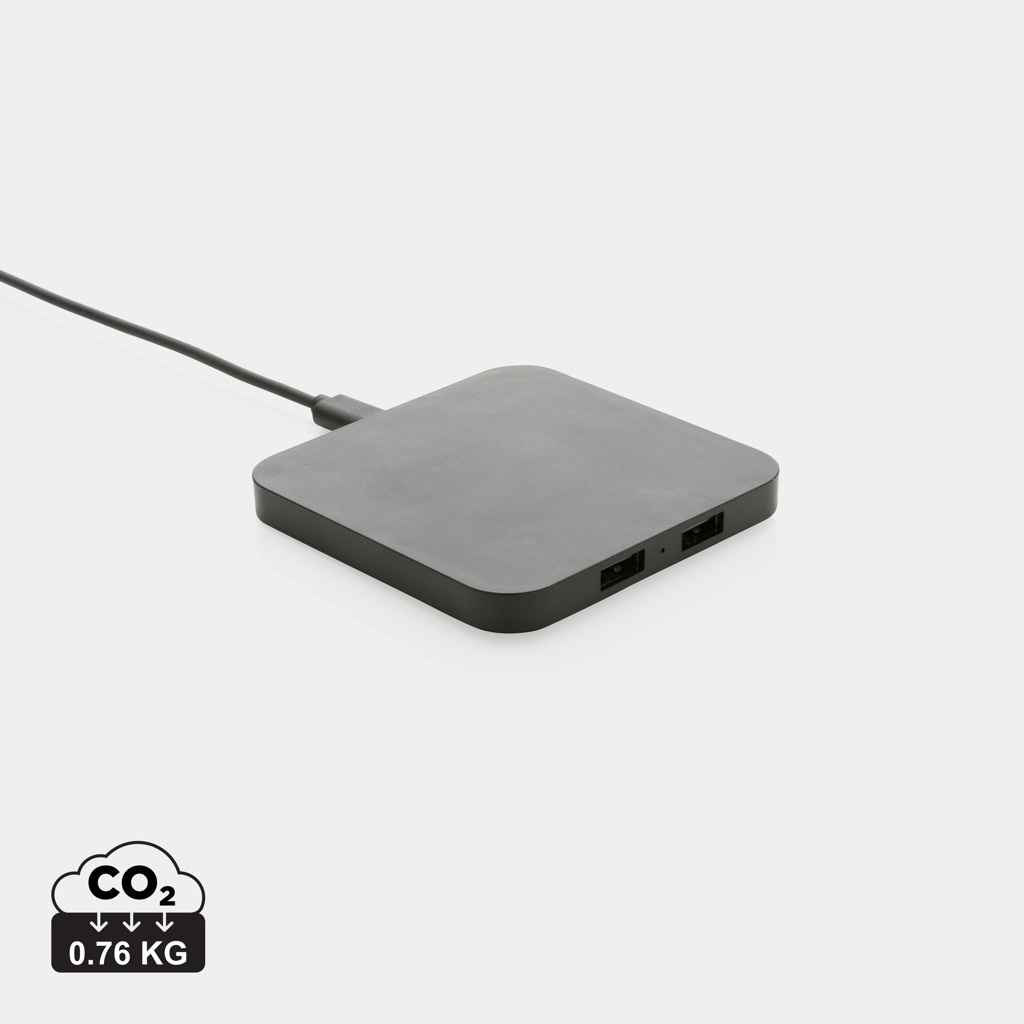 Logotrade presentreklam bild: 10W trådlösa laddare m. USB portar RCS återvunnen plast
