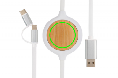 Logotrade kampanjprodukter bild: 3-i-1 kabel med 5W bambu trådlös laddare