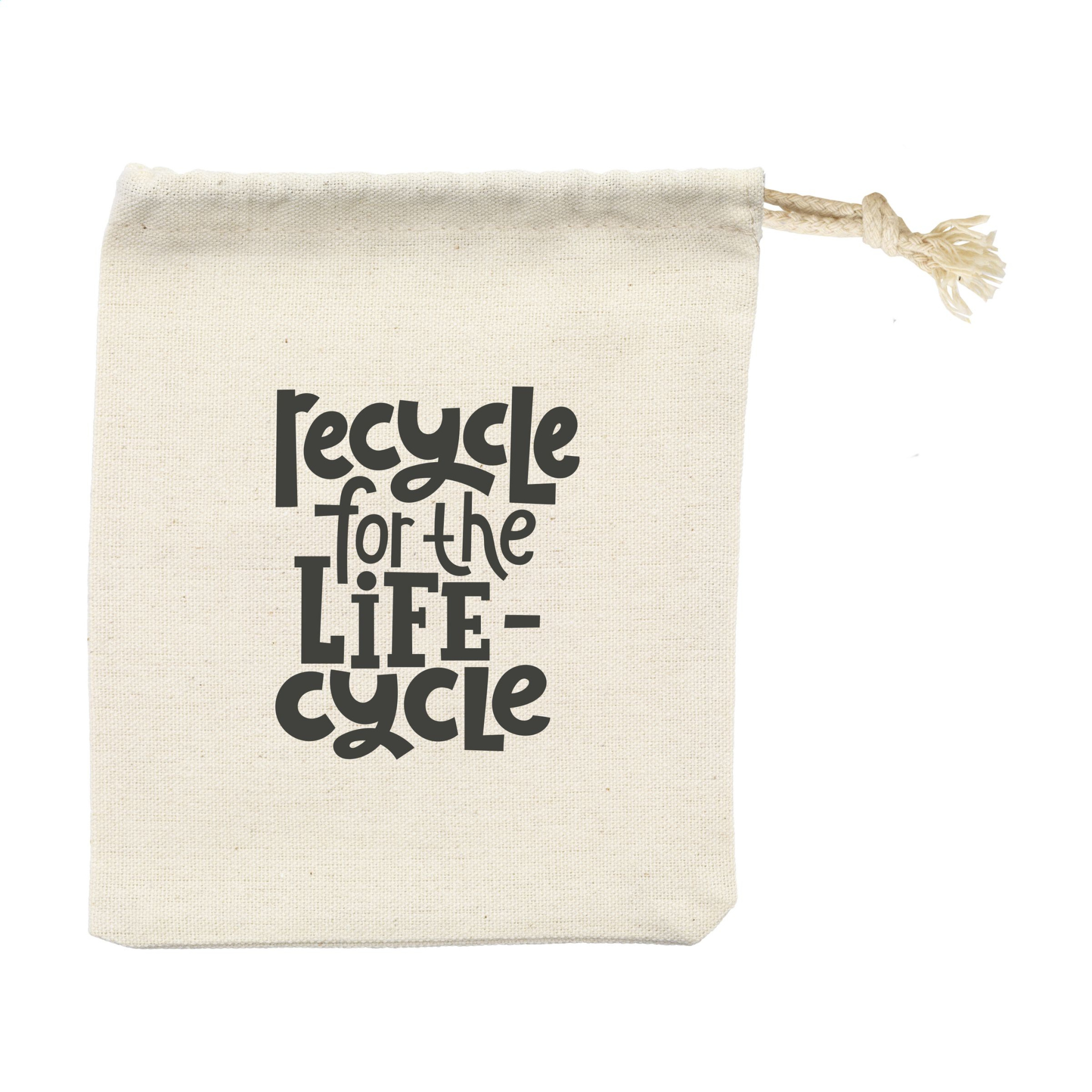 WoW! Set med 4 bambuunderlägg (Ø 10 cm) levereras i en praktisk bomullspåse. Detta set är förpackat i ett återvinningsbart kraftpappersomslag.