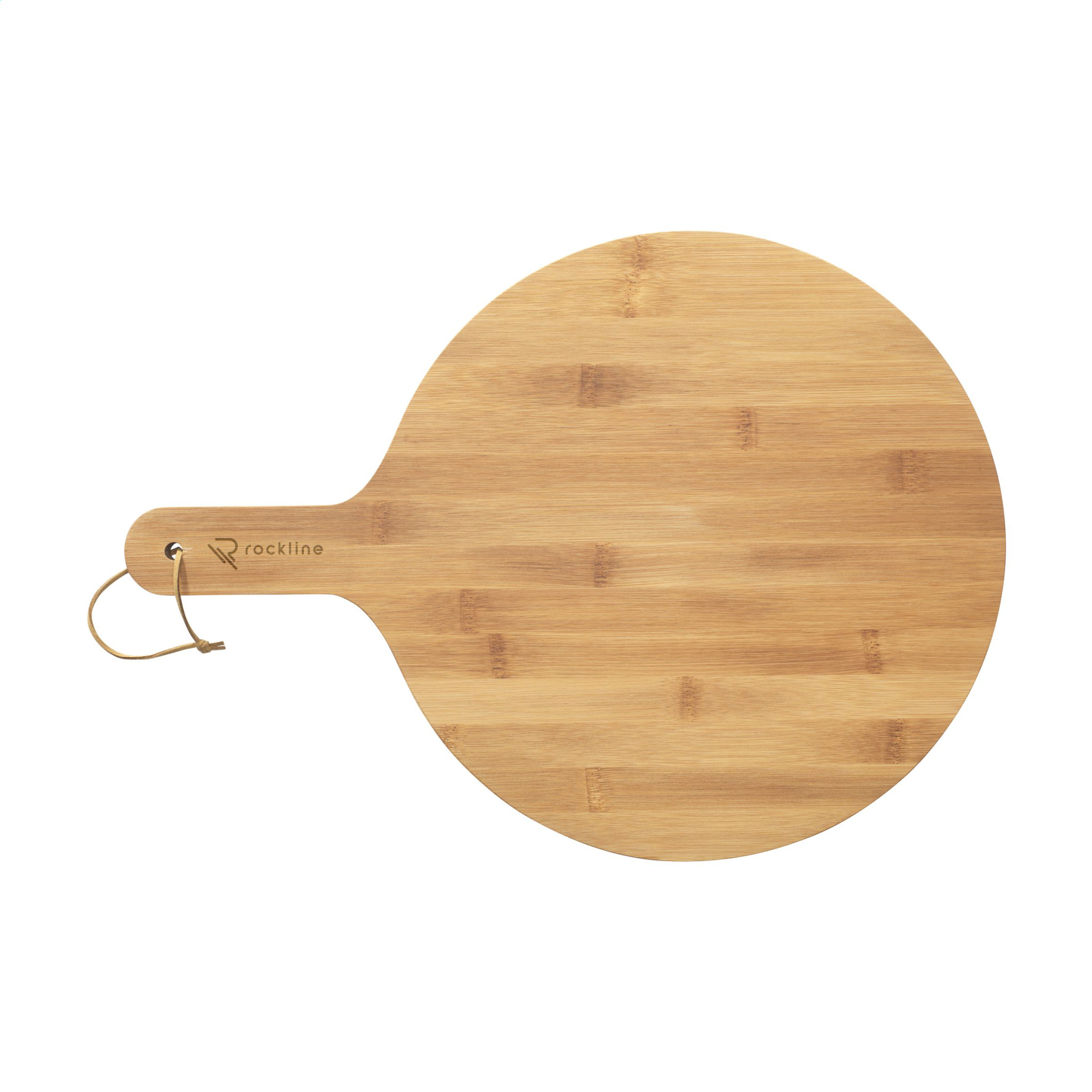 Rund serveringsbräda med lädersnöre. Tillverkad av stark, polerad, FSC 100% certifierad bambu. Hygienisk, antibakteriell och lätt att rengöra. Denna tavla har en stor serveringsyta med en diameter på inte mindre än 31,5 cm. En generös storlek för servering av pizza eller tapas under fester och till drinkar. Passar även som både ostbräda och skärbräda. OBS: På grund av bambuens naturliga korn och konturer kan vi inte garantera konsistens i gravyrens djup/färg. Varje artikel levereras i en individuell brun kartong.