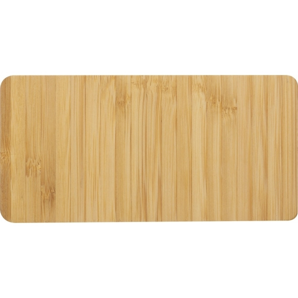 Bambubricka med bambusked, borosilikatglasmugg (150ml) och en öppning för socker eller choklad etc. Din logotyp kommer att graveras på tavlan.