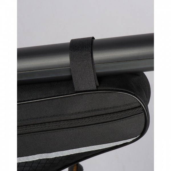 Cykelväska av slitstark 600D polyester med reflekterande ränder. Väskan kan enkelt fästas på mittramen med hjälp av fästena och erbjuder tillräckligt med utrymme för alla viktiga redskap. Vi kommer att trycka din logotyp på väskan.