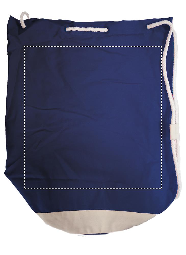 Marinblå seglarväska i bomullstwill med vit rand. 200gr/m2. Rymmer 6 liter.
