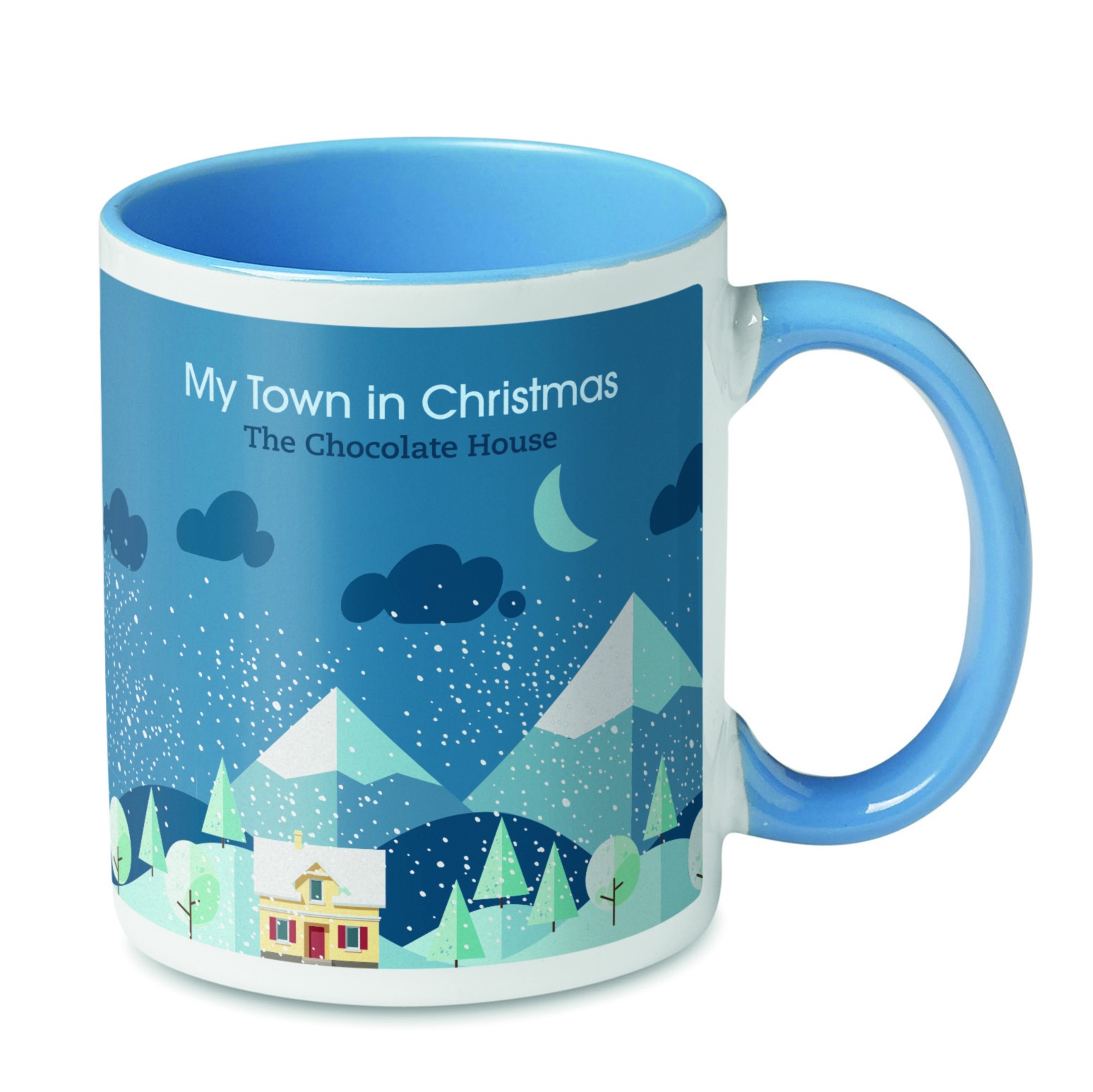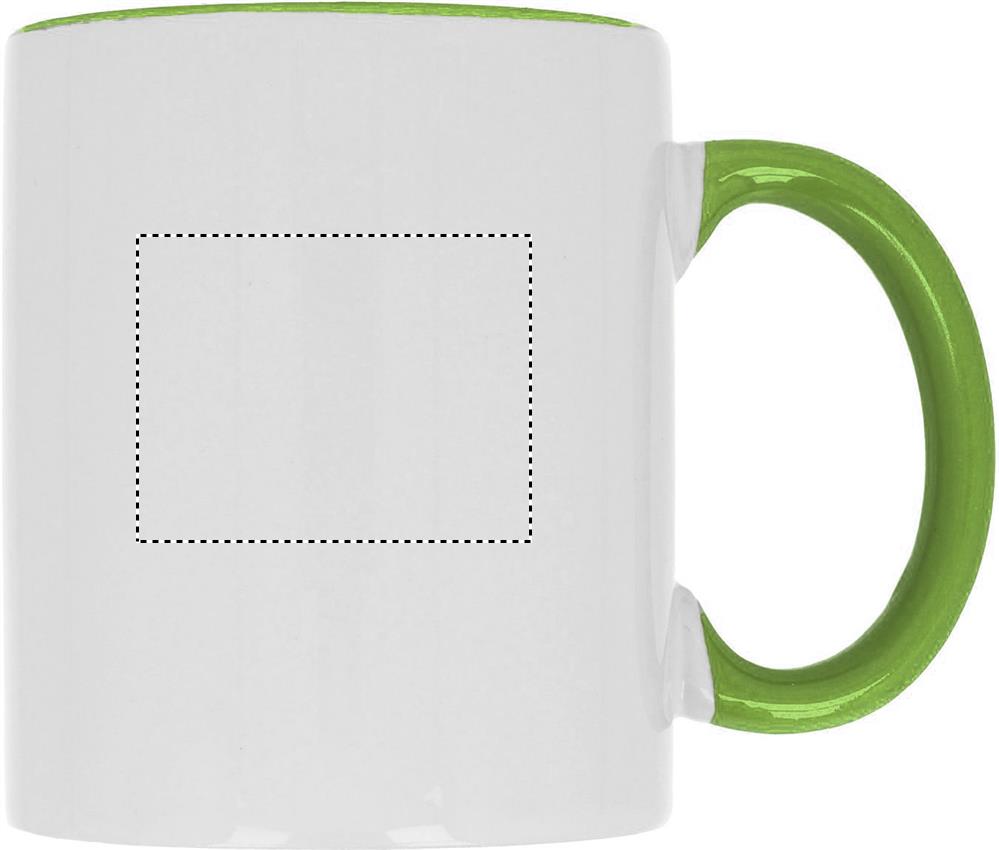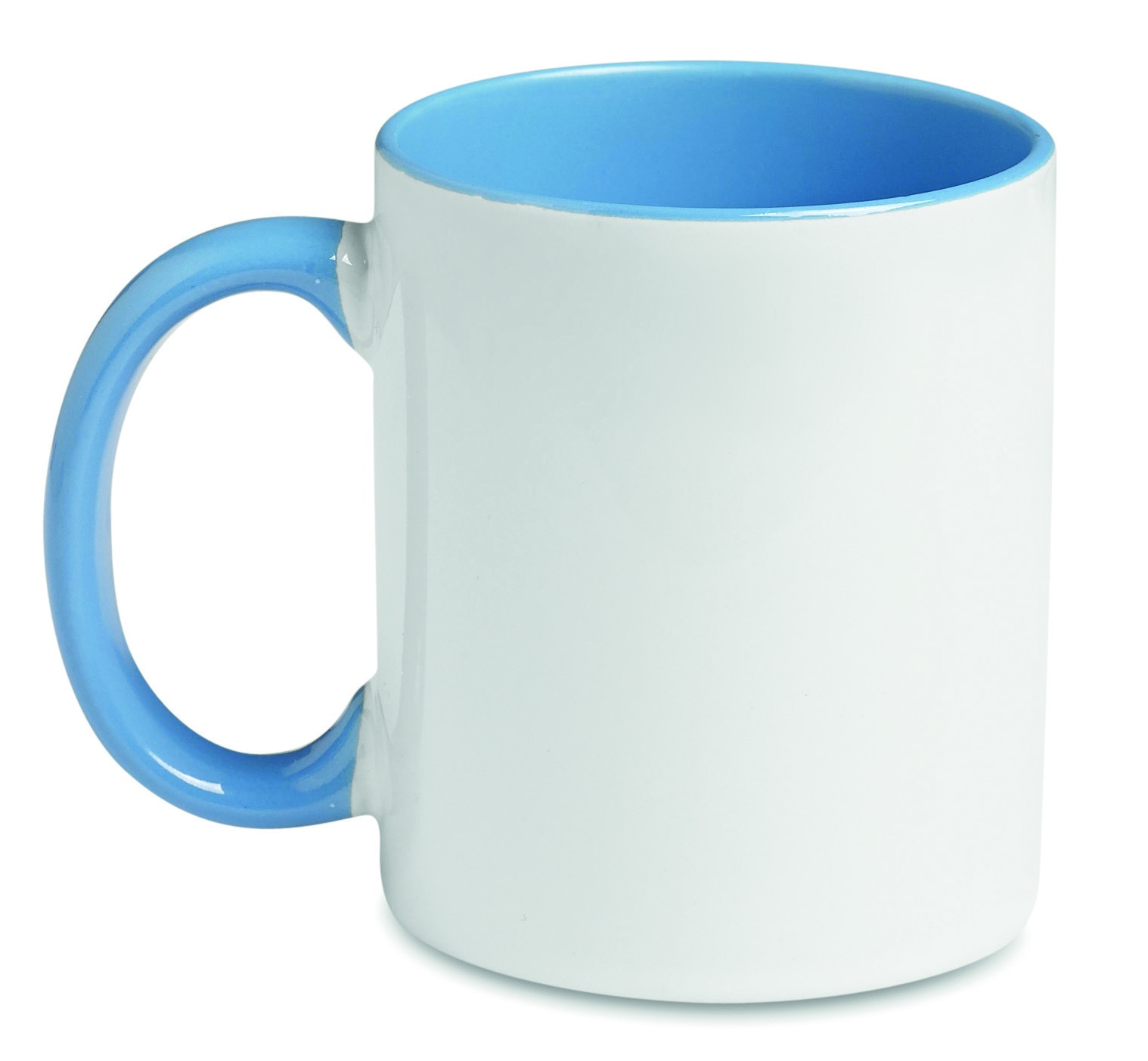 Keramikmugg 300 ml med särskild beläggning för sublimering med färgade handtag och insida. Med sublimering kan du trycka bildmotiv runt hela muggen. För tryck i flera färger - var vänlig och kontakta oss för pris.