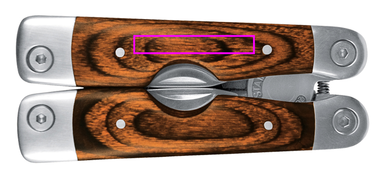 Rostfritt multifunktionsverktyg, med chica träskal på handtagen: stor tång med skärfunktion, liten såg med mätenhet och fil, kniv, stjärnskruvmejsel, tre skruvmejslar i olika bredder, liten kniv med kabelisoleringsborttagare och burköppnare. Multiverktyget kommer i en bältesväska så att du alltid kan bära det med dig. Vi graverar din logotyp på handtaget.